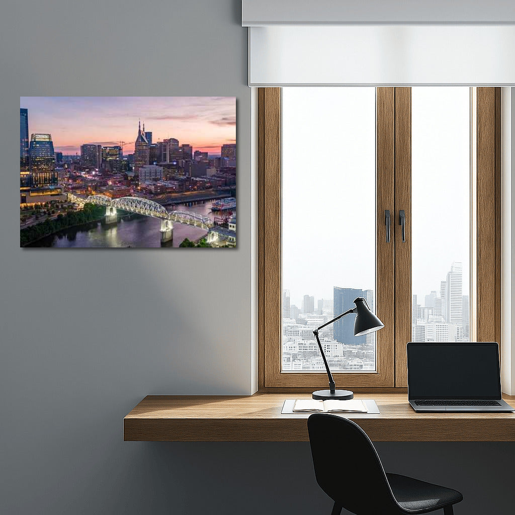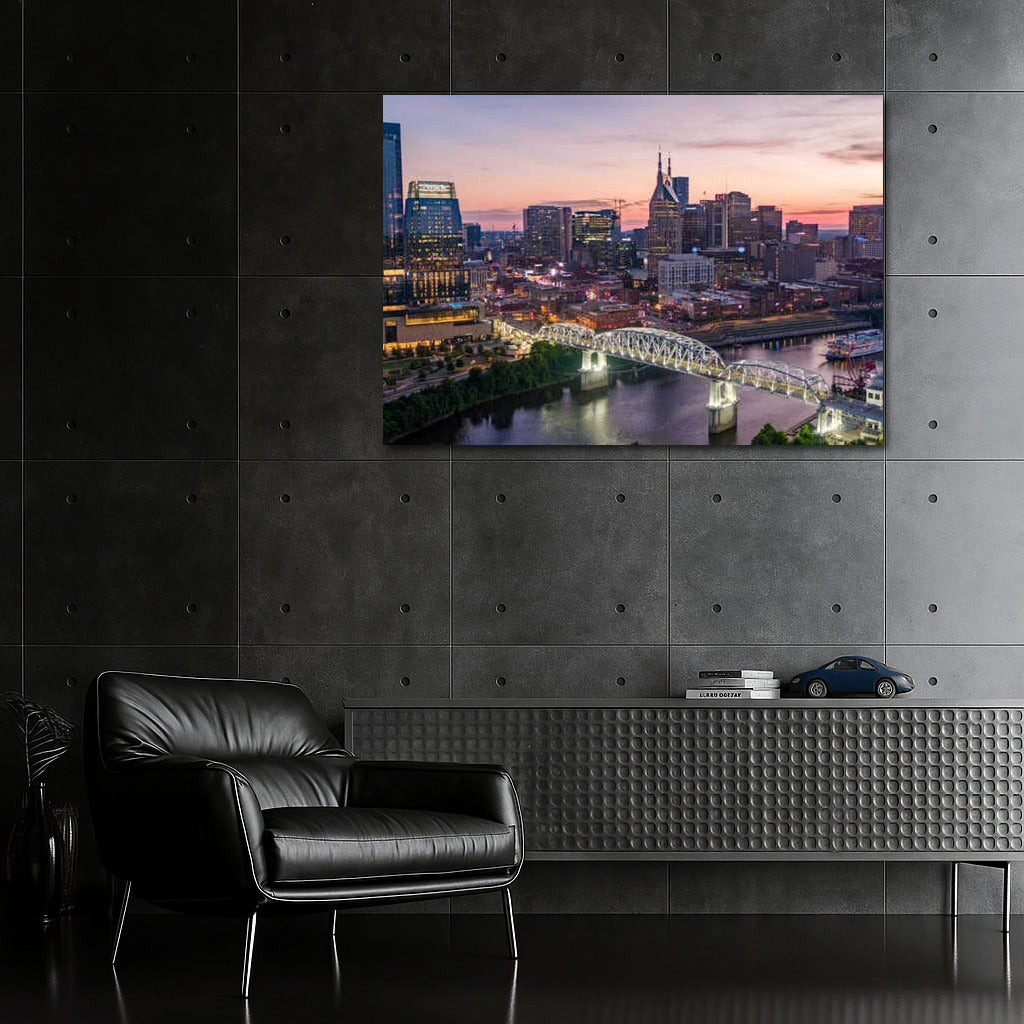 Dive into Tennessee's musical heart with this poster: Nashville's nightscape will bring any wall art to life. See more from the collection: Country Art