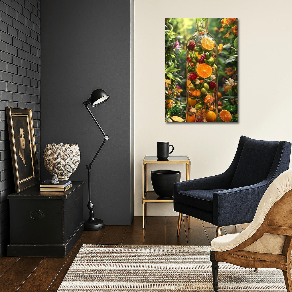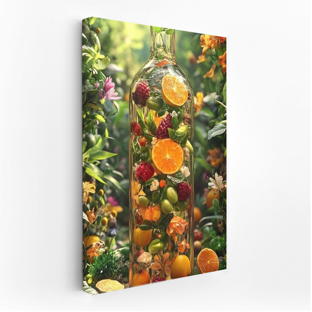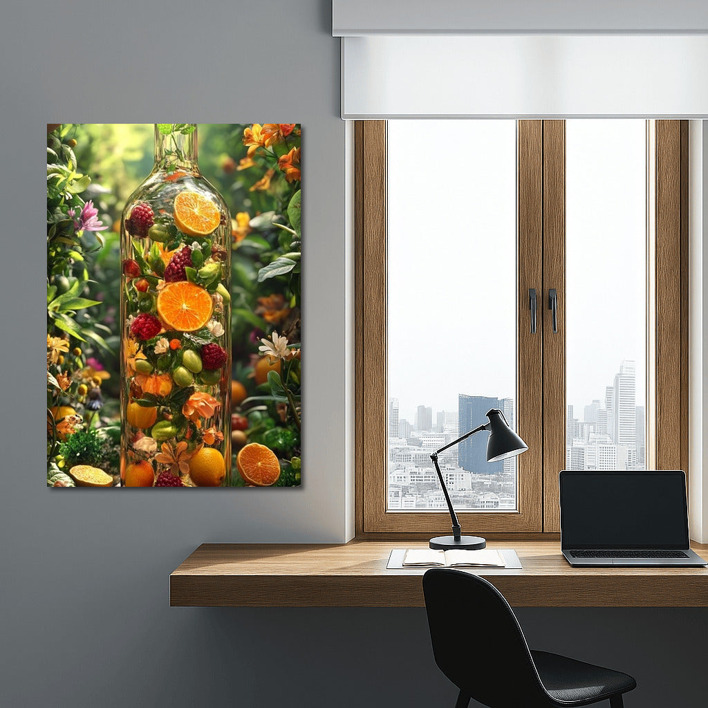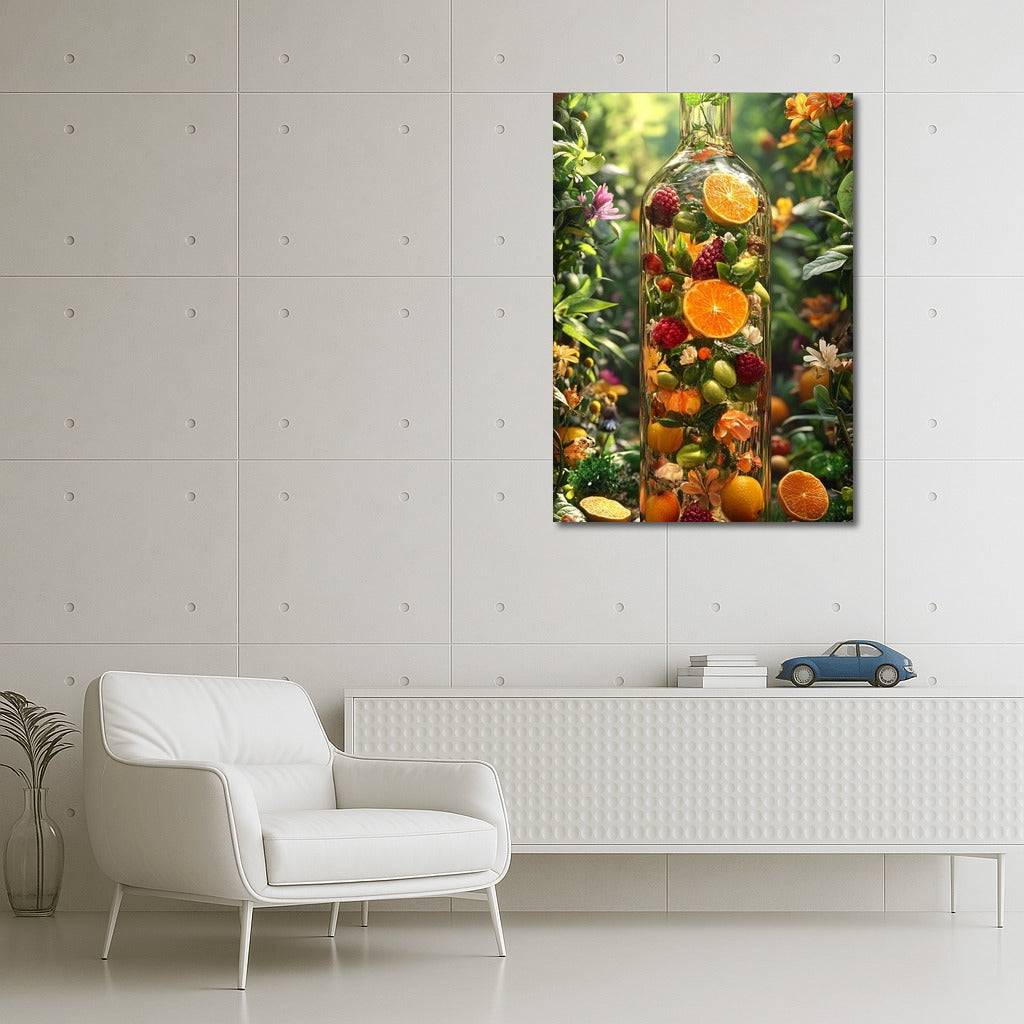 A juicy bouquet of nature in a bottle - a poster where fruits and flowers merge into a bright celebration for your space. Wall art! ?? See more from the collection: Food Art
