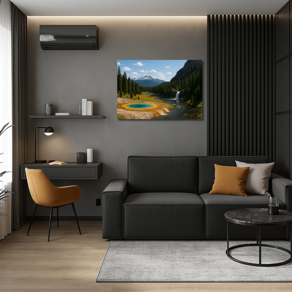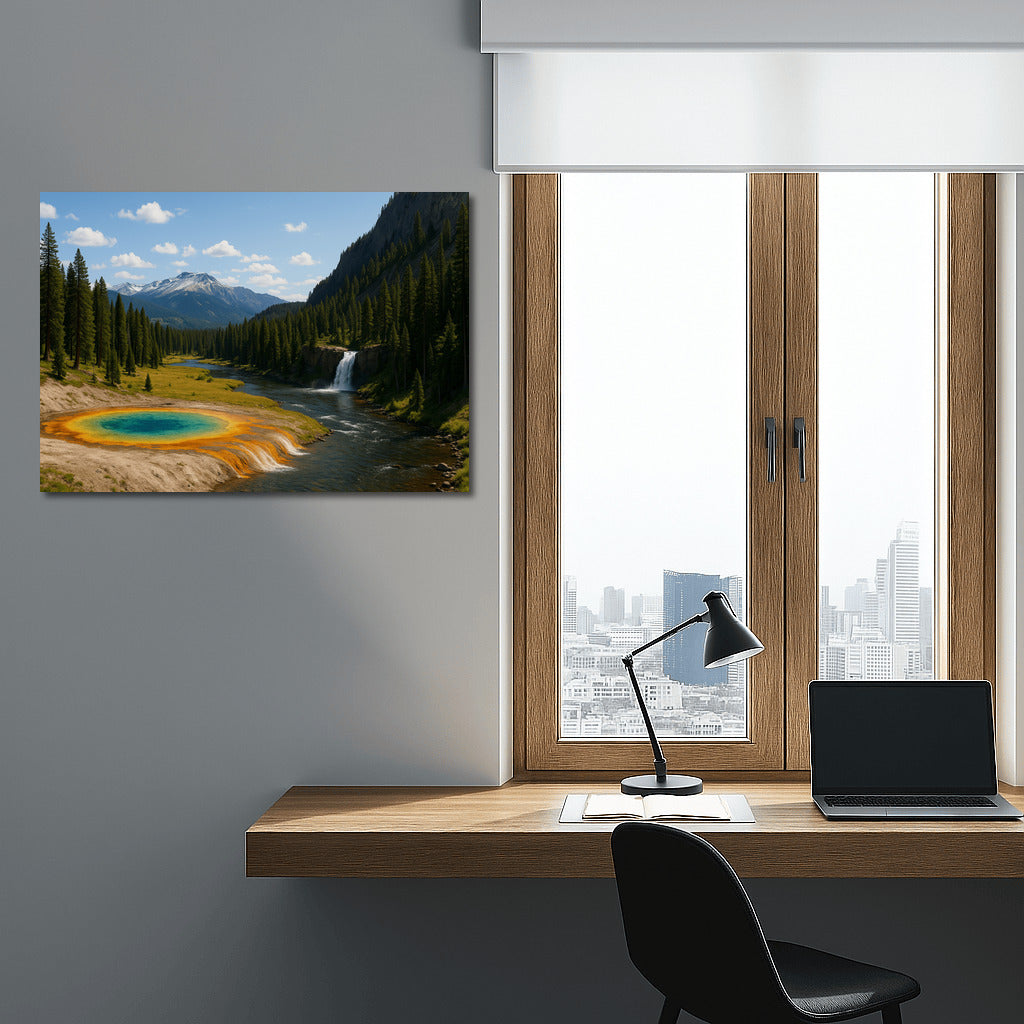 Vivid painting of Yellowstone Park in Wyoming, Montana, Idaho. Wall art about wild nature and its grandeur. See more from the collection: National Parks Art