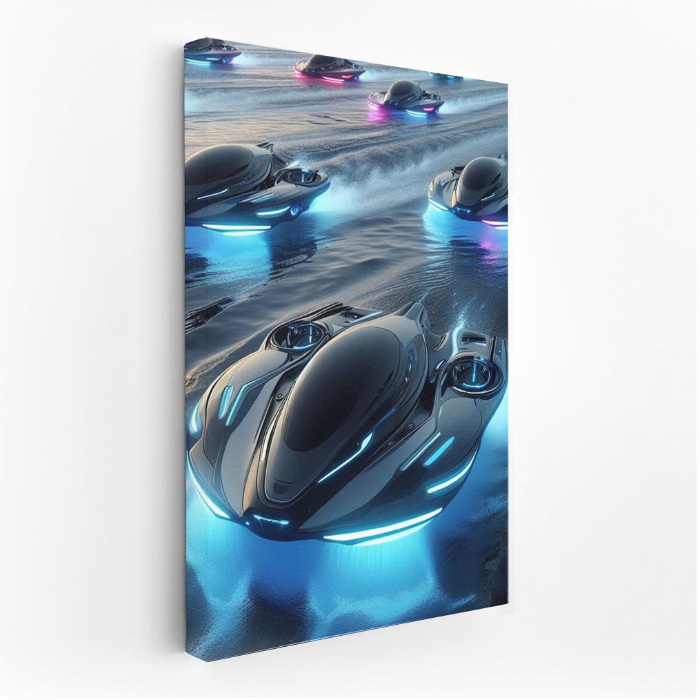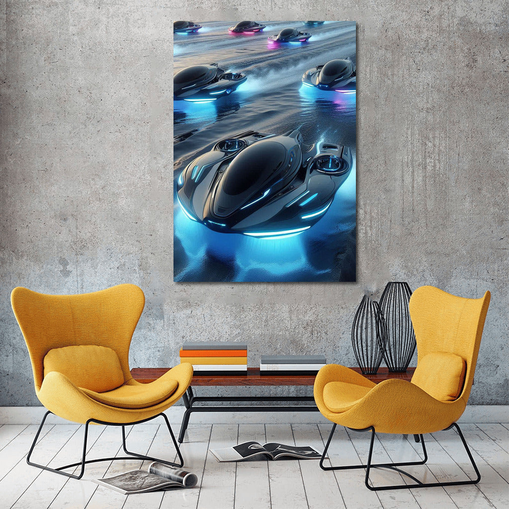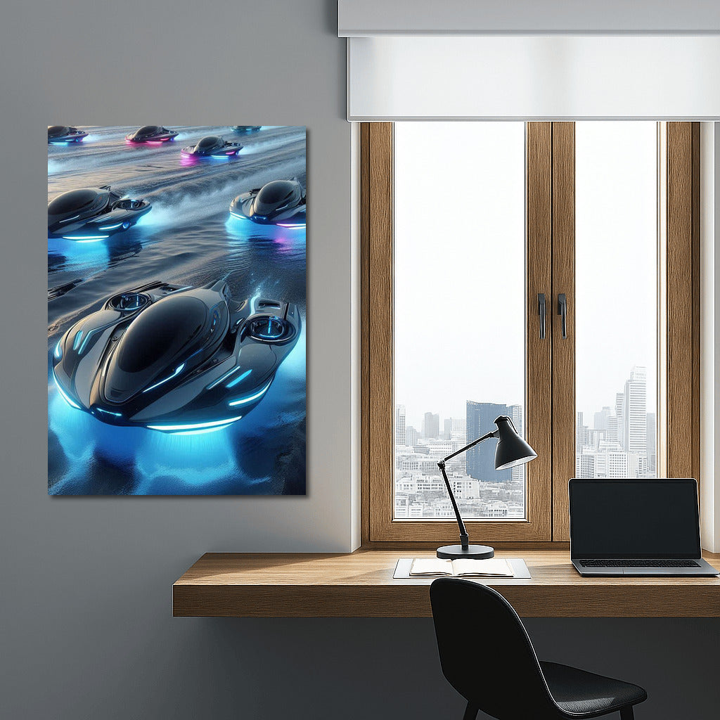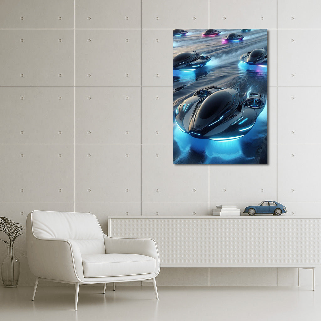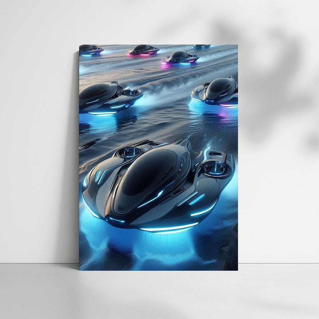 The future is in front of you: Hovercrafts Sea 3 painting - dynamics and style in one poster. Improve your wall art! See more from the collection: Futurism Art