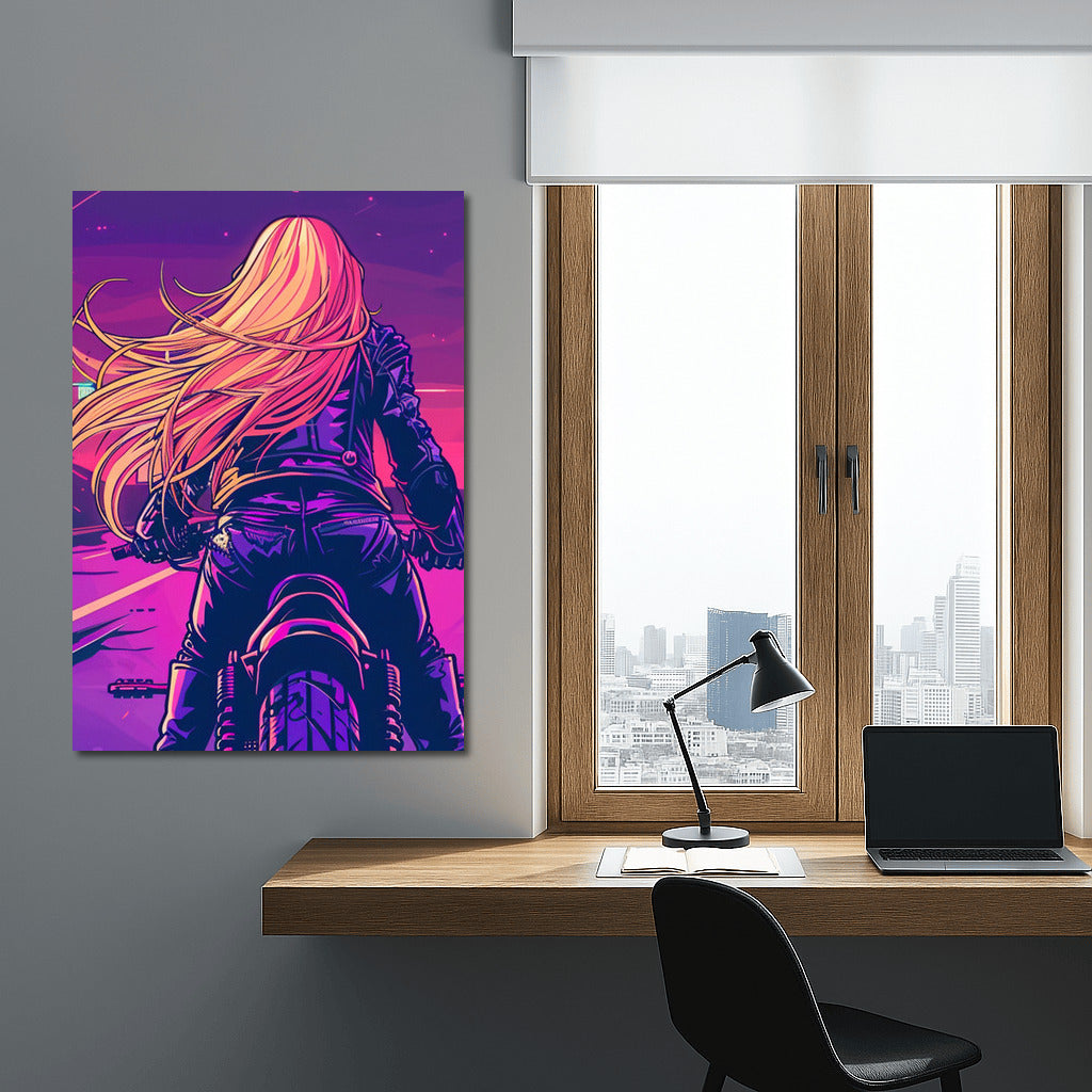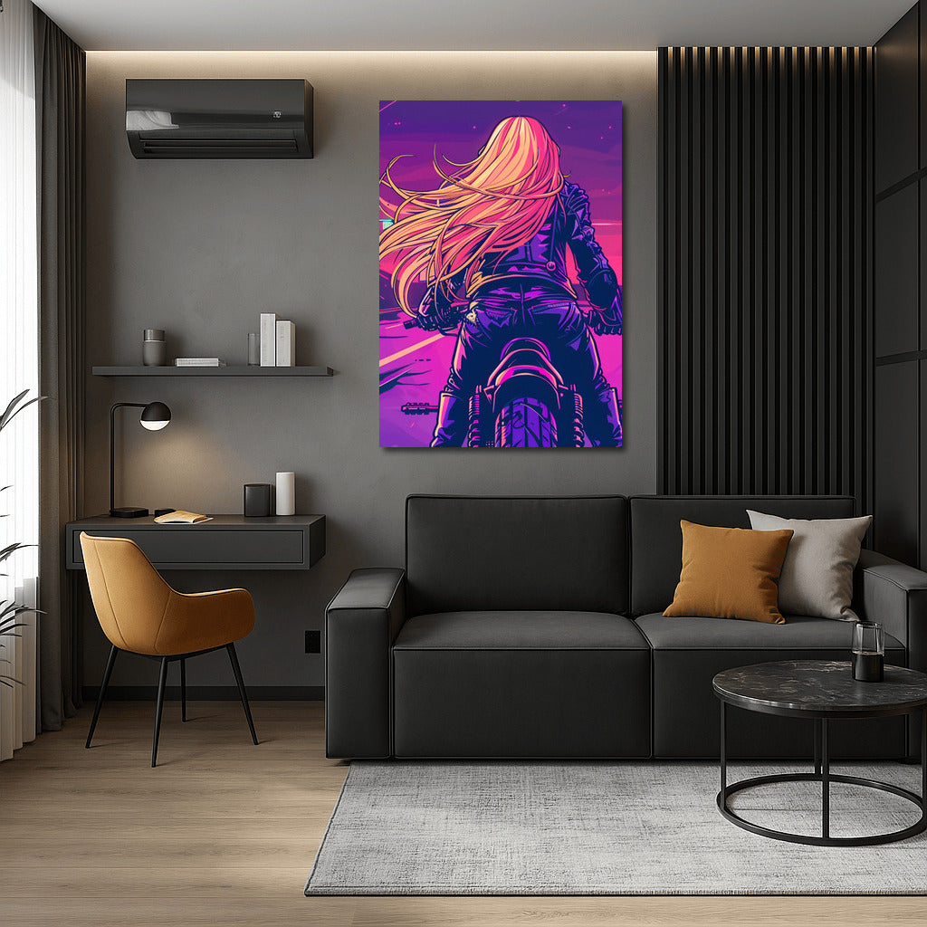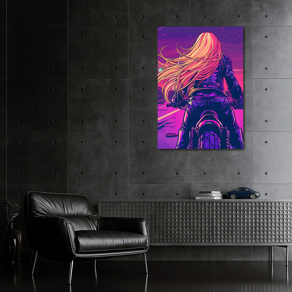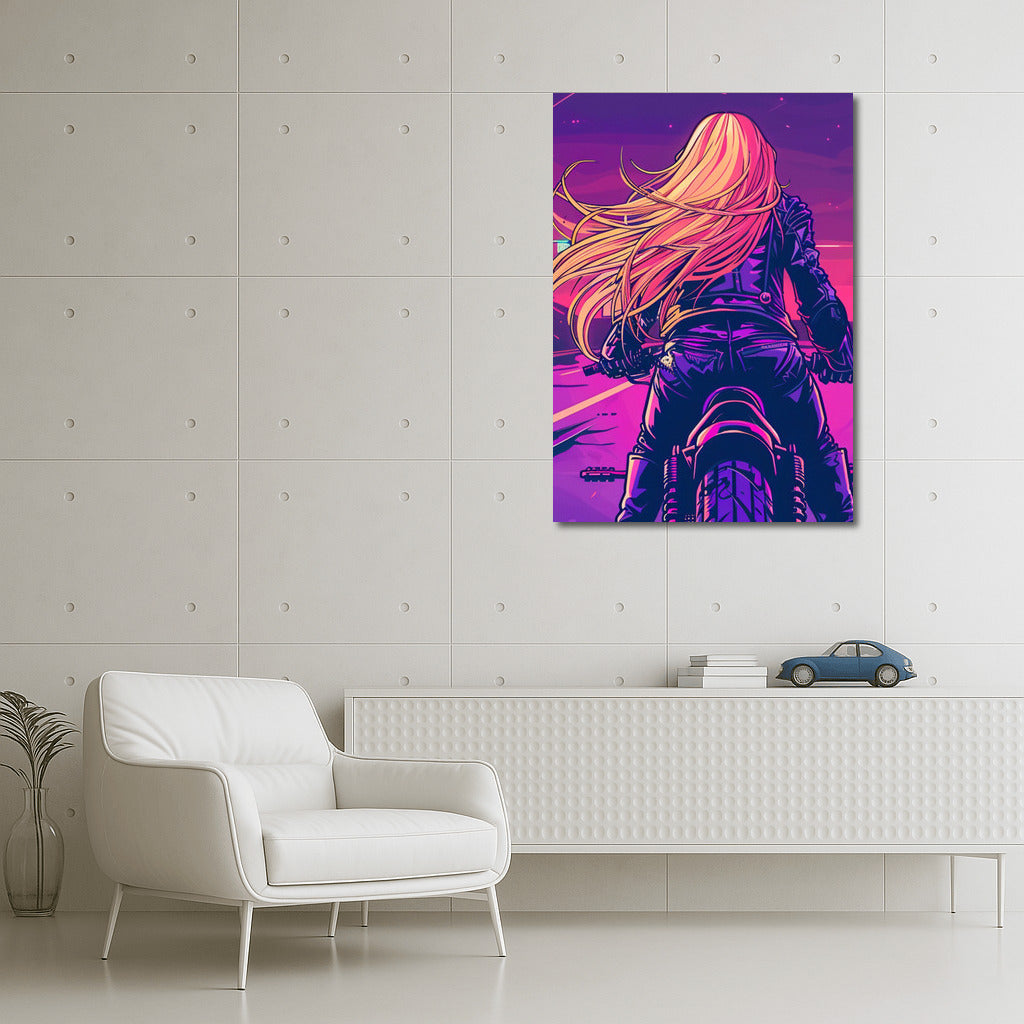 Neon Amazon: Anime Motorcycle Maiden in the World of Speed Wall Art