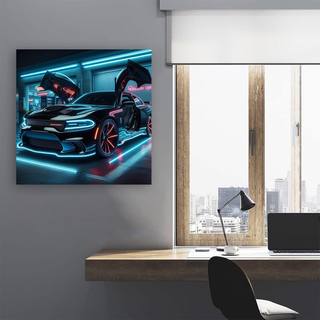 Neon Dodge Charger SRT Hellcat - Unleash Beast Wall Art