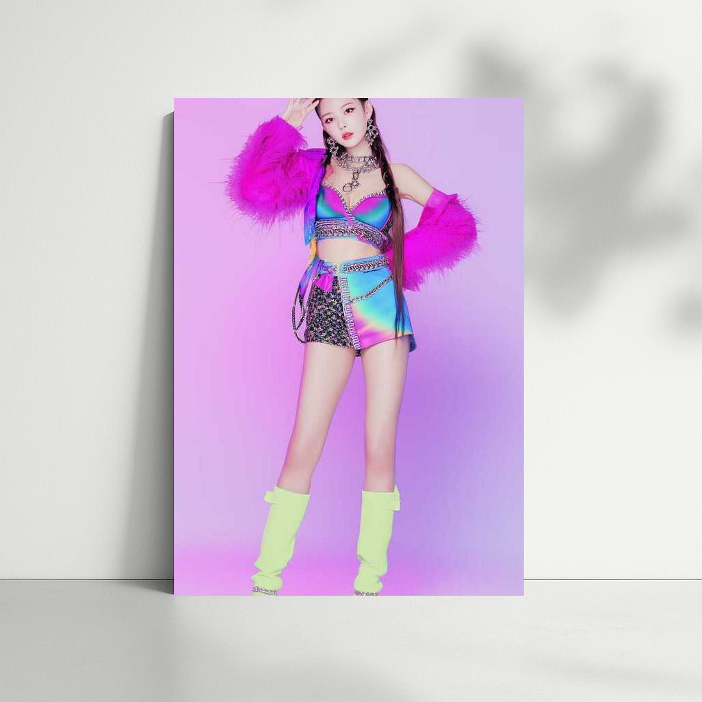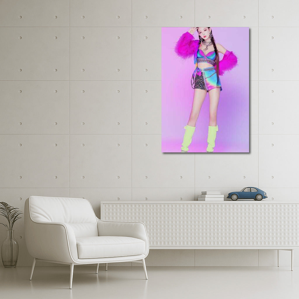 A vibrant K-Pop poster: neon and extravagance combined to reflect the dynamism and energy of Korean culture. Wall art. See more from the collection: K-pop & Korean culture Art