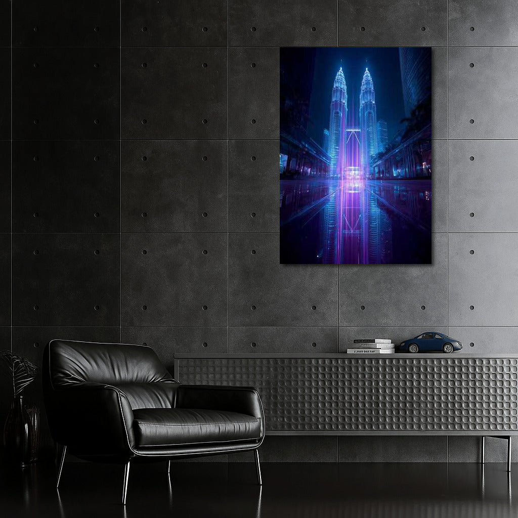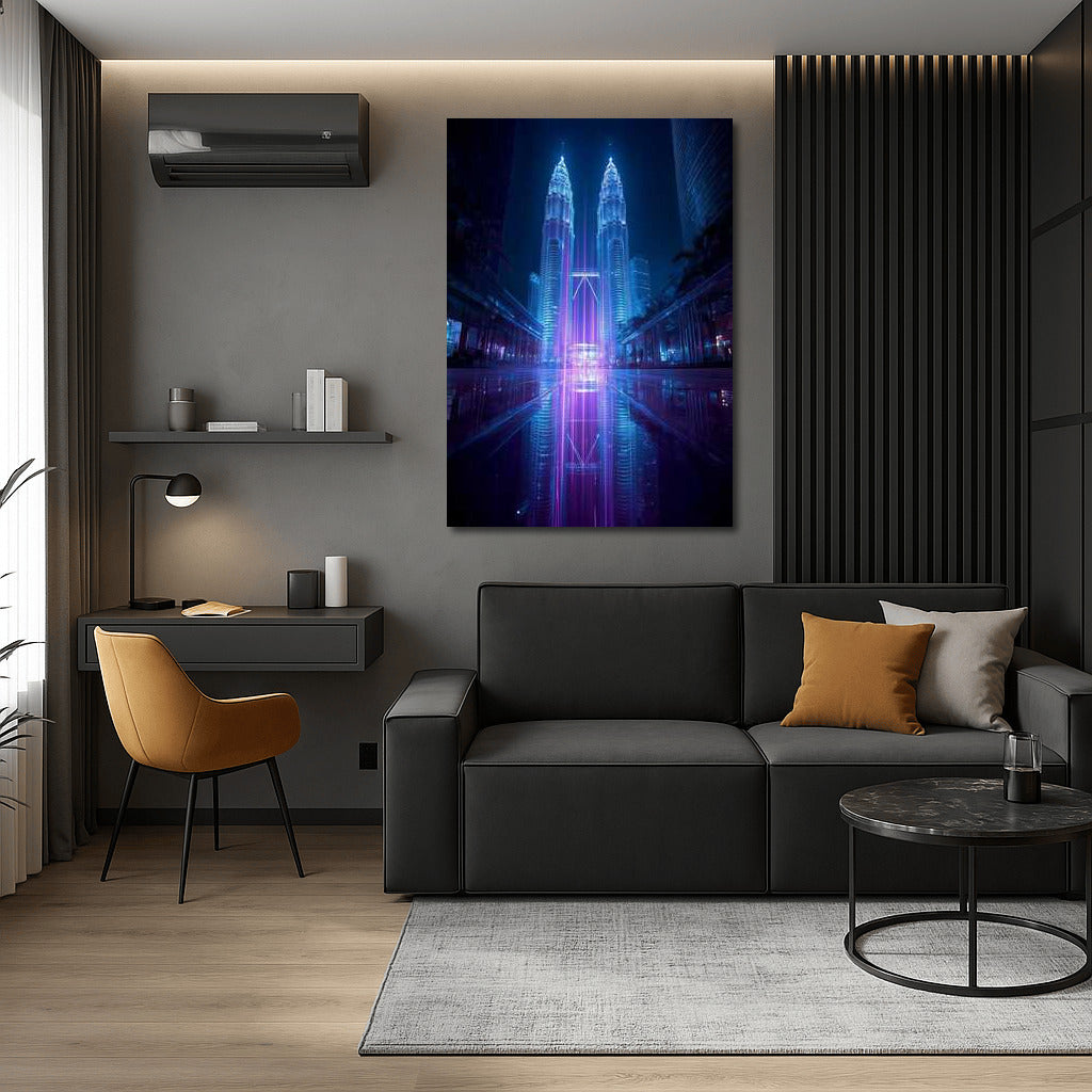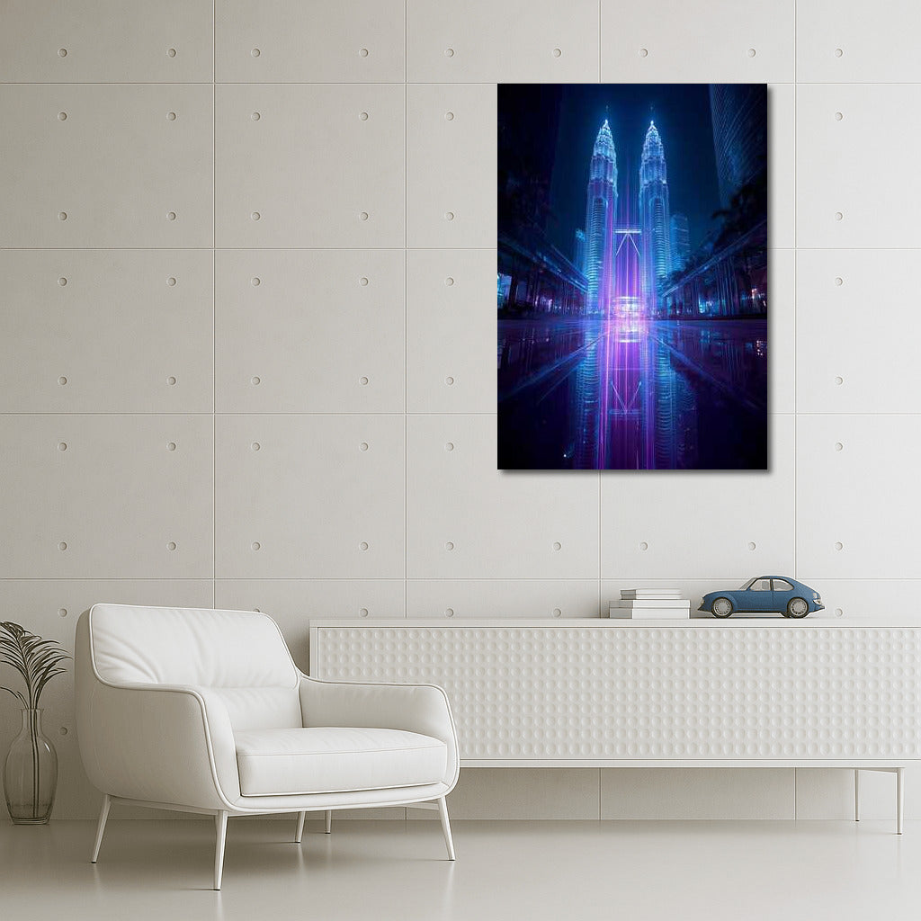 Neon Glow of the Twin Towers: The Heart of Malaysia Wall Art