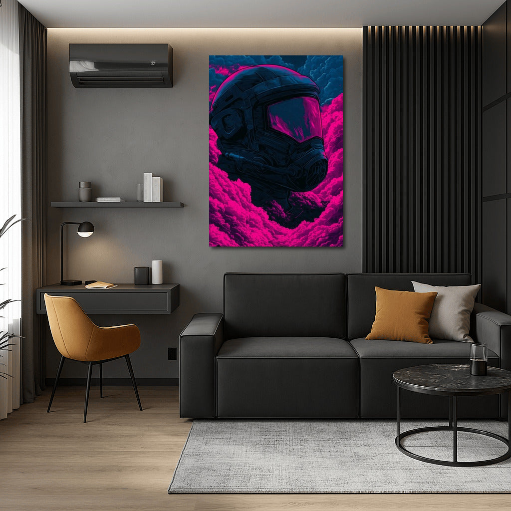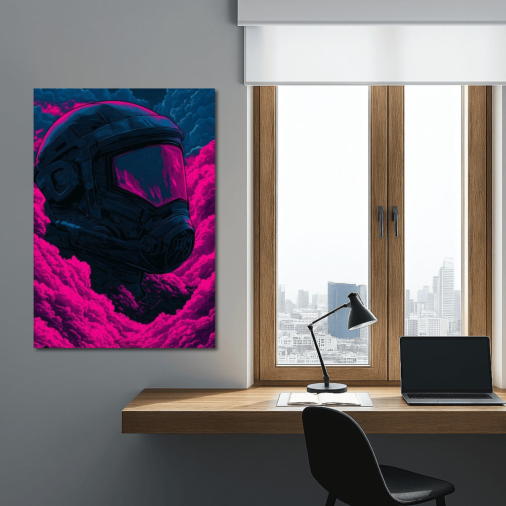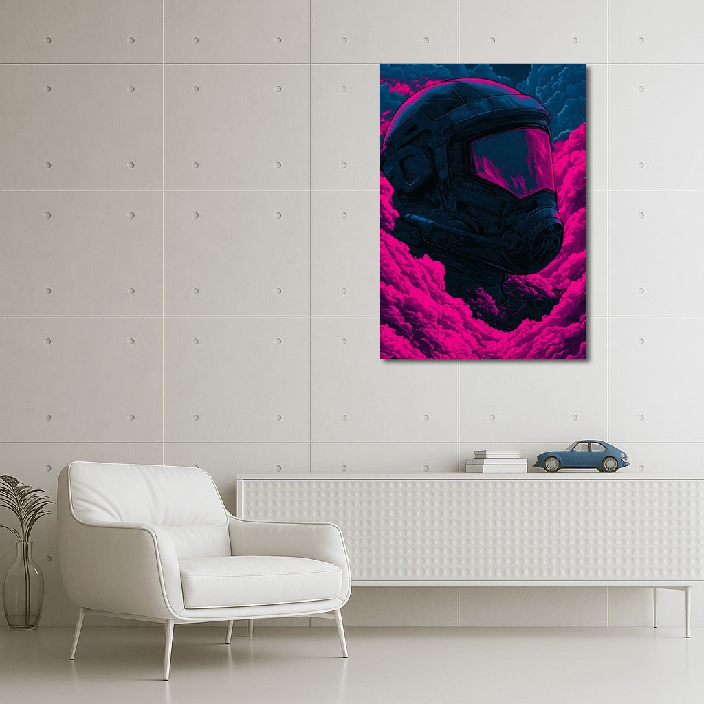 Space painting: astronaut helmet in lava neon clouds. Inspirational wall art for sci-fi lovers. See more from the collection: Cyberpunk Art