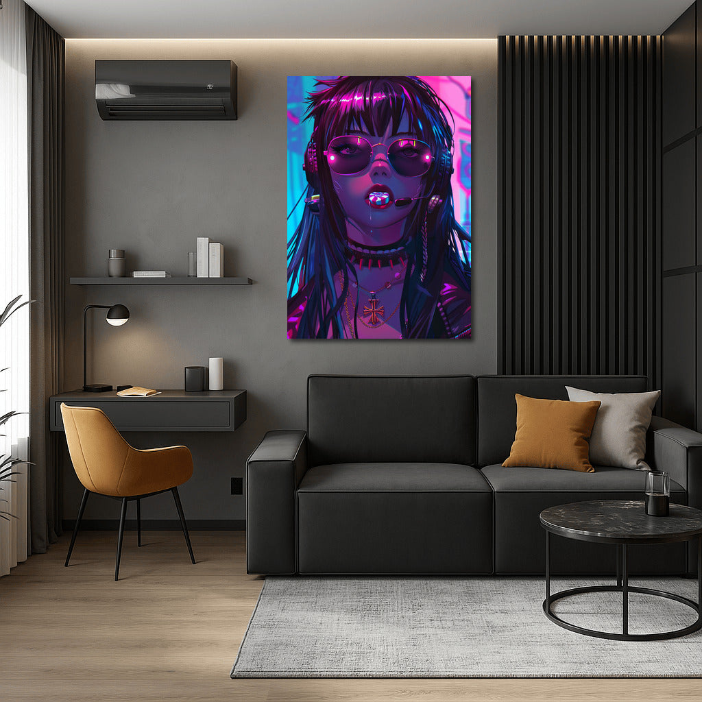 Neon Muse: Mysterious Anime Girl Wall Art