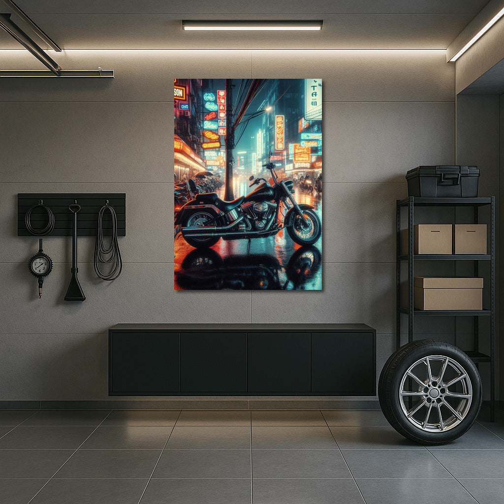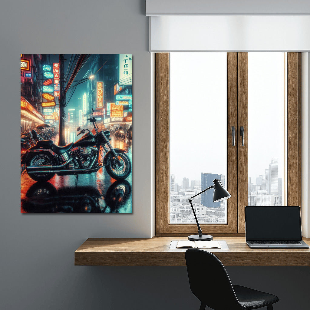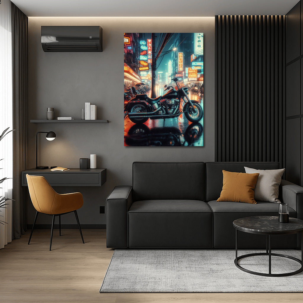 Neon Night: Harley Davidson in the Heart of the City Wall Art