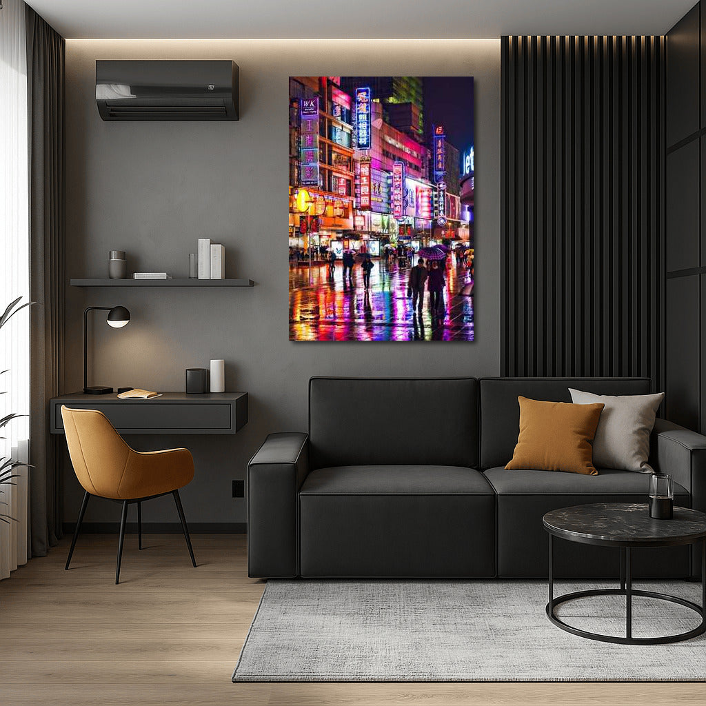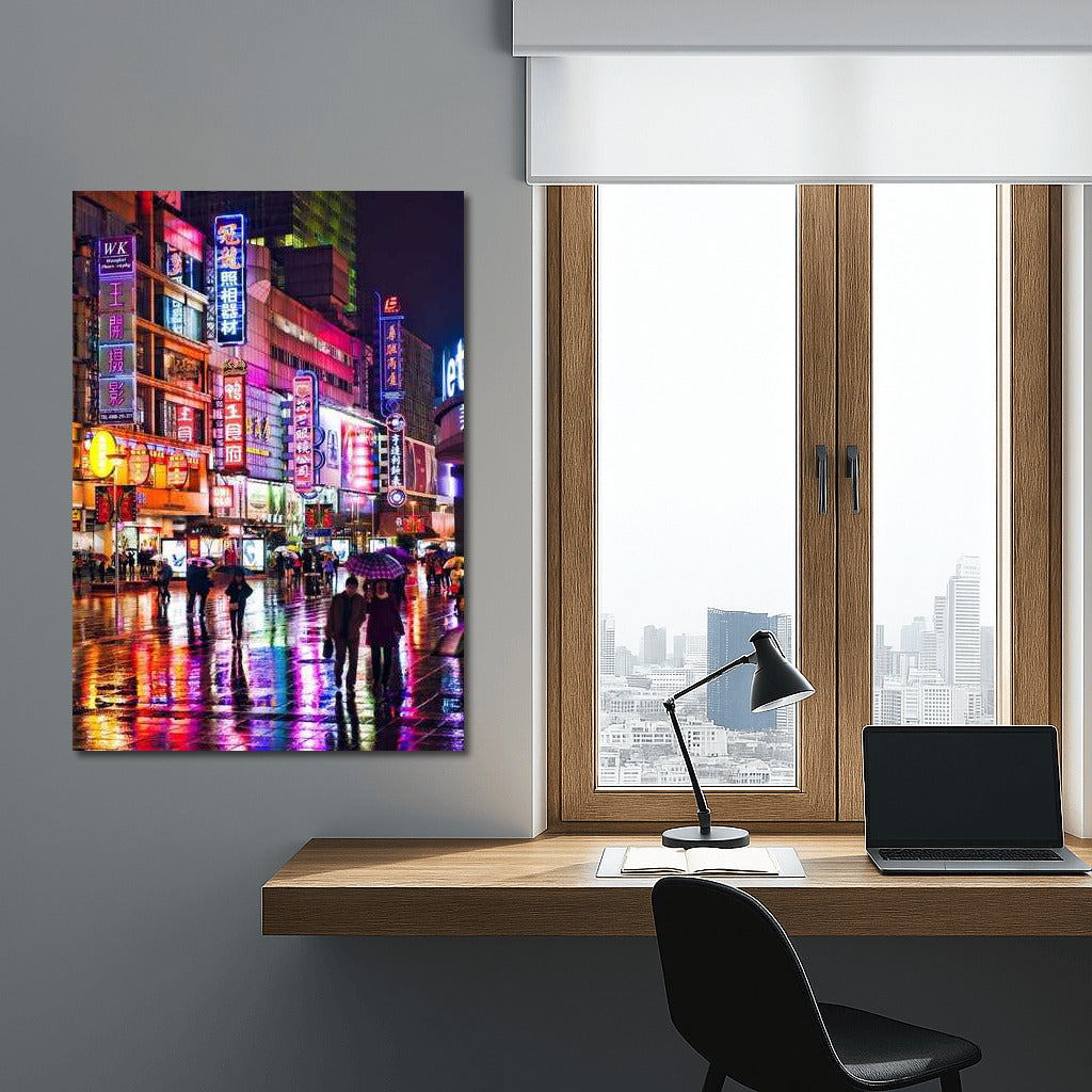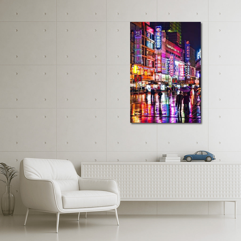 Neon Night in China: Bright Lights and Reflections Wall Art