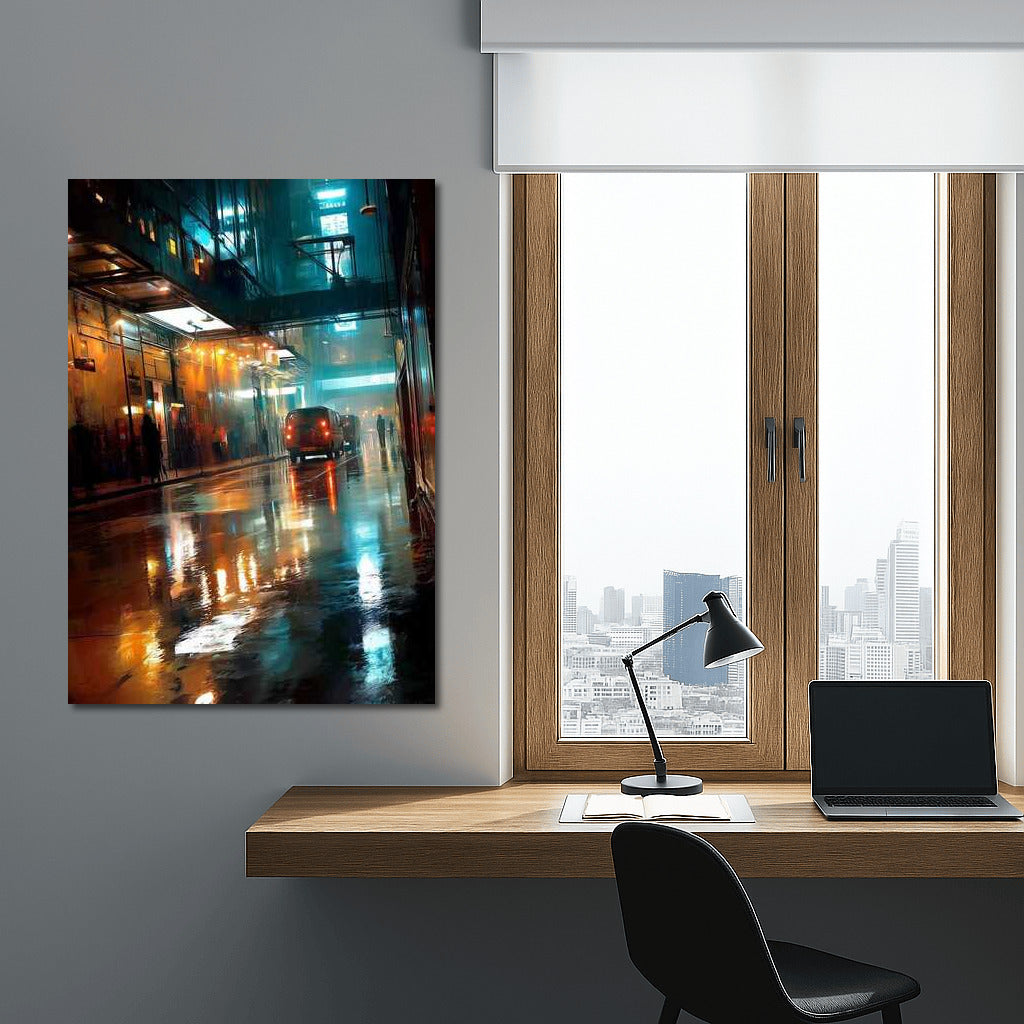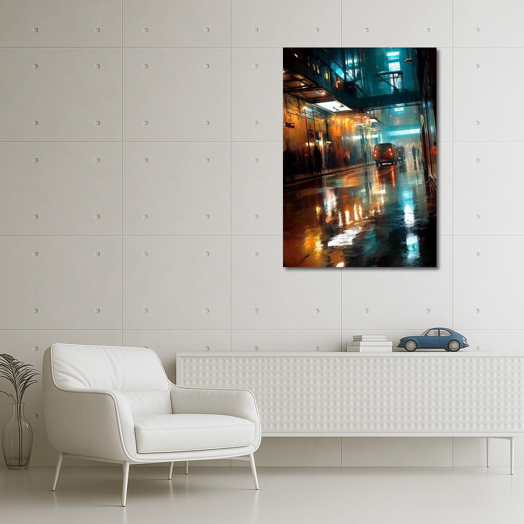 Neon Symphony: Wet Streets of the Metropolis Wall Art