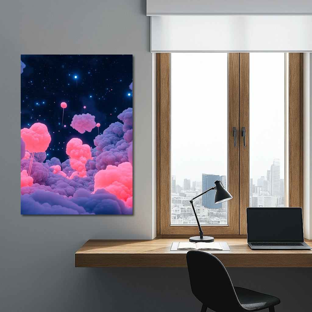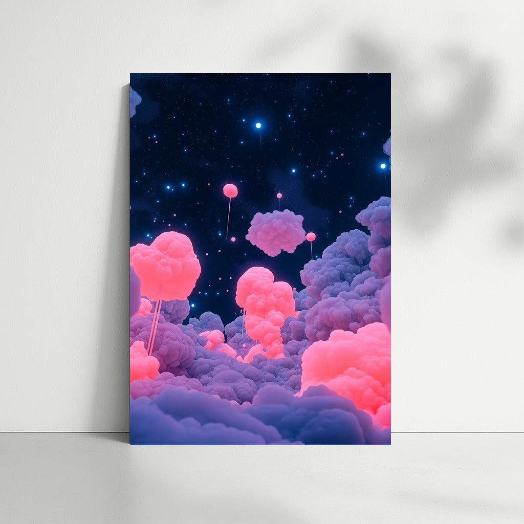 Space clouds in neon colors. Create a fantastic mood with this poster for your wall art. See more from the collection: Art For Girls