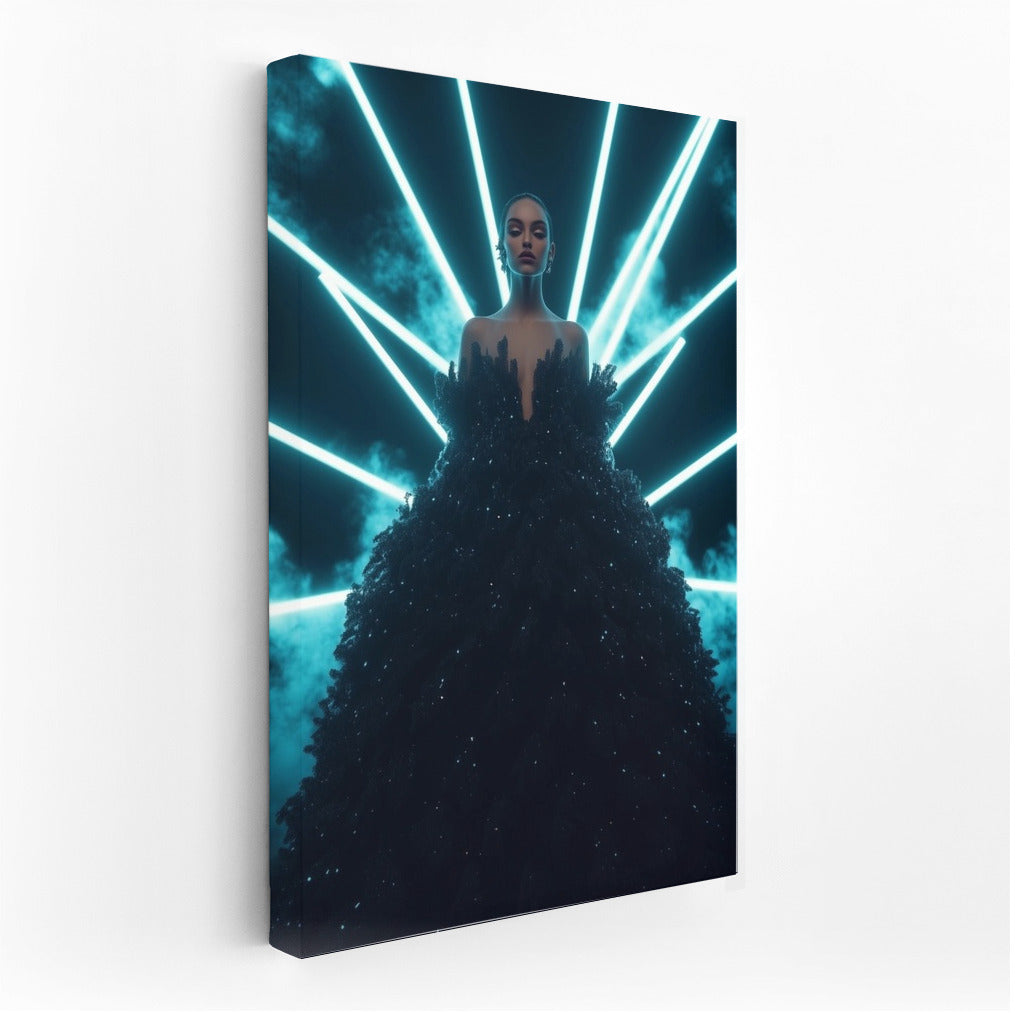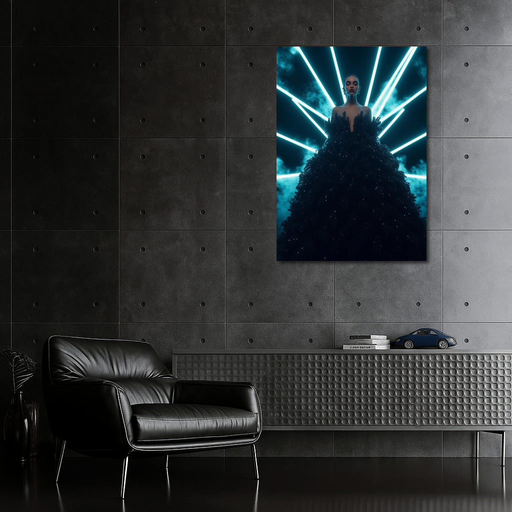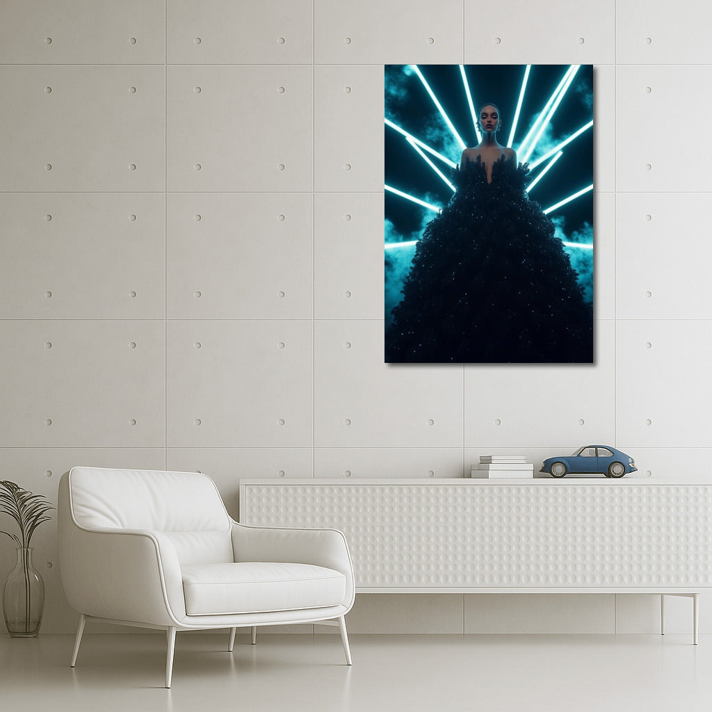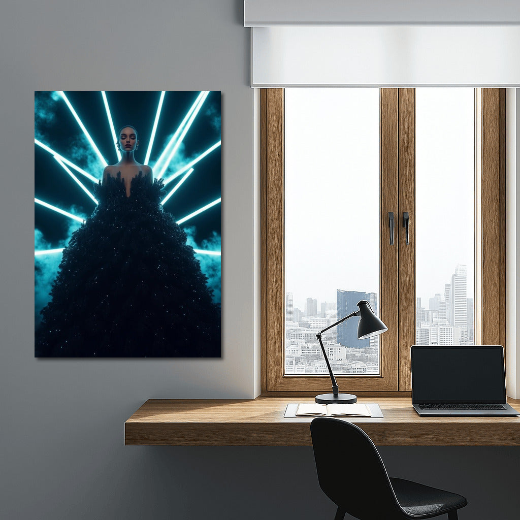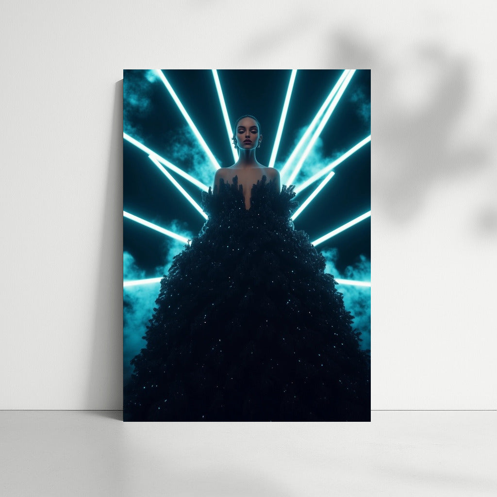 A mysterious figure in the glow of neon. Modern wall art that will add mystery and style to your interior. See more from the collection: Wall Art with Women