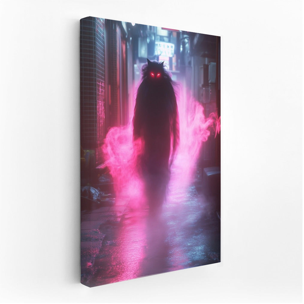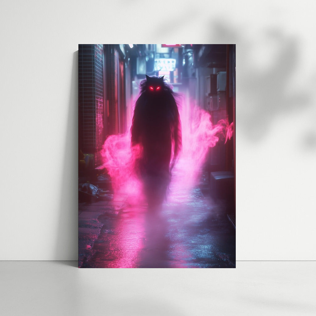 A mysterious figure in the neon fog of a night city. This poster will add brightness to your wall art. See more from the collection: Neon Art