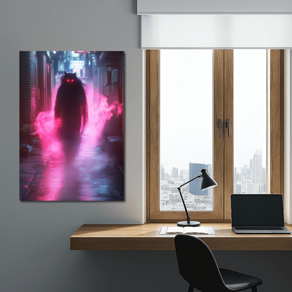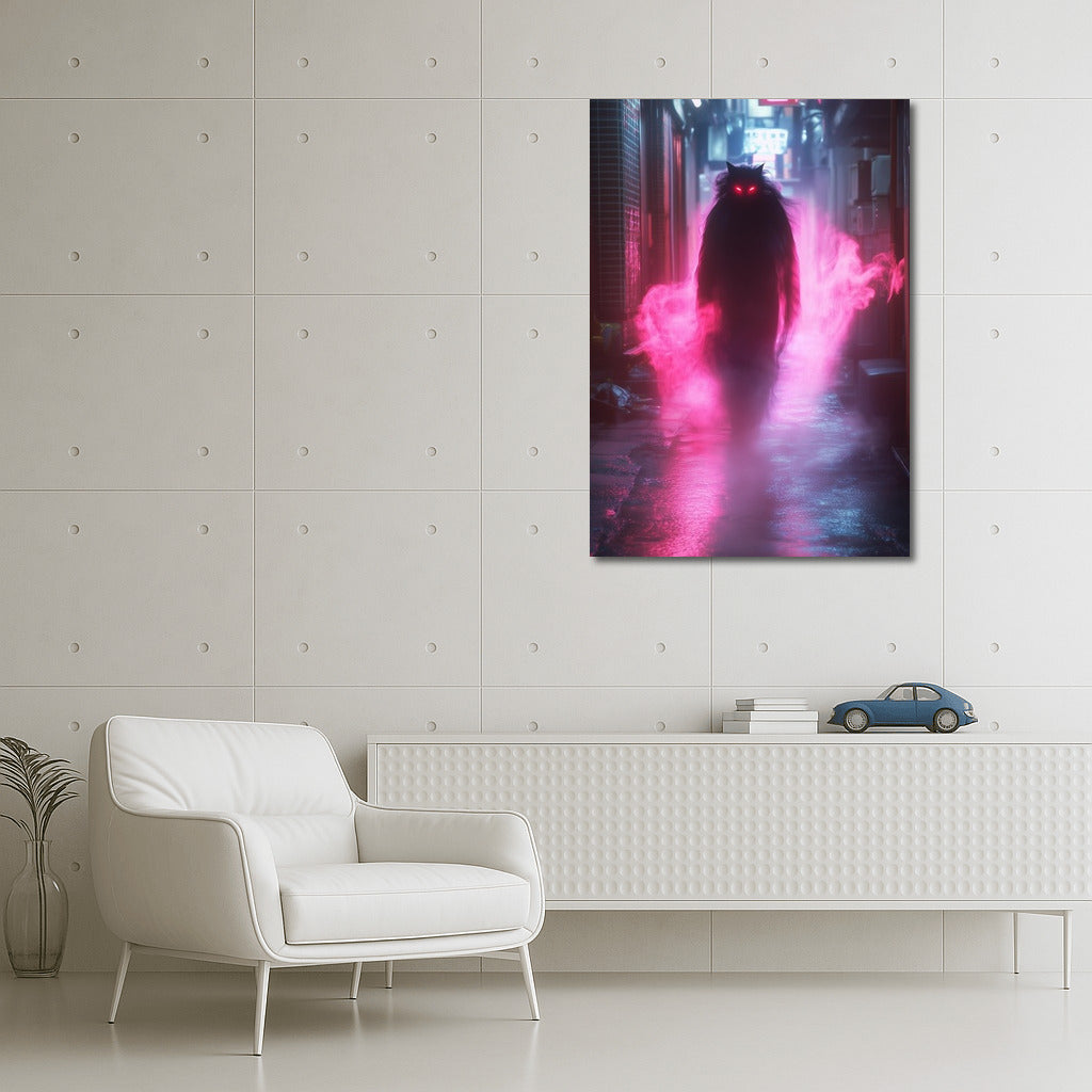 Neon Wanderer in the City Haze Wall Art