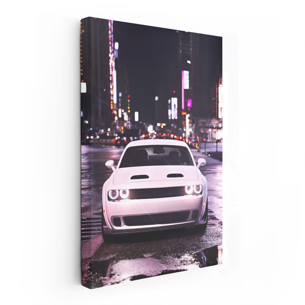 This painting is a bomb for any car enthusiast. The Dodge poster on the wall is a symbol of speed and power. This wall art screams: "Put the gas to the floor and go!" The car in the painting is the dream of everyone who lives on the edge. See more from the collection: Dodge Art