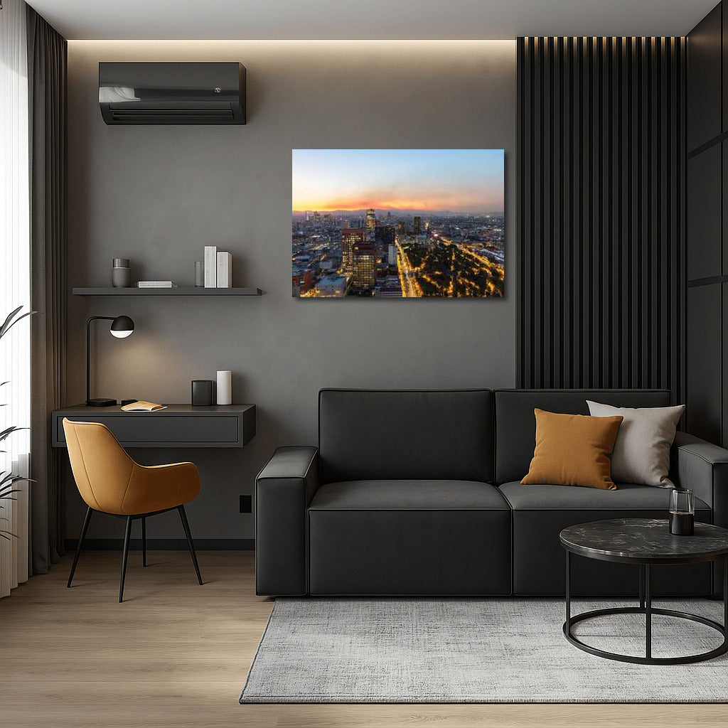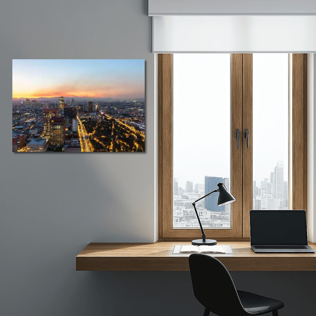 Immerse your interior in the lights of the metropolis with the painting Mexico City: a look at the impressive city and its nighttime charm. See more from the collection: Cityscapes & Skylines Art