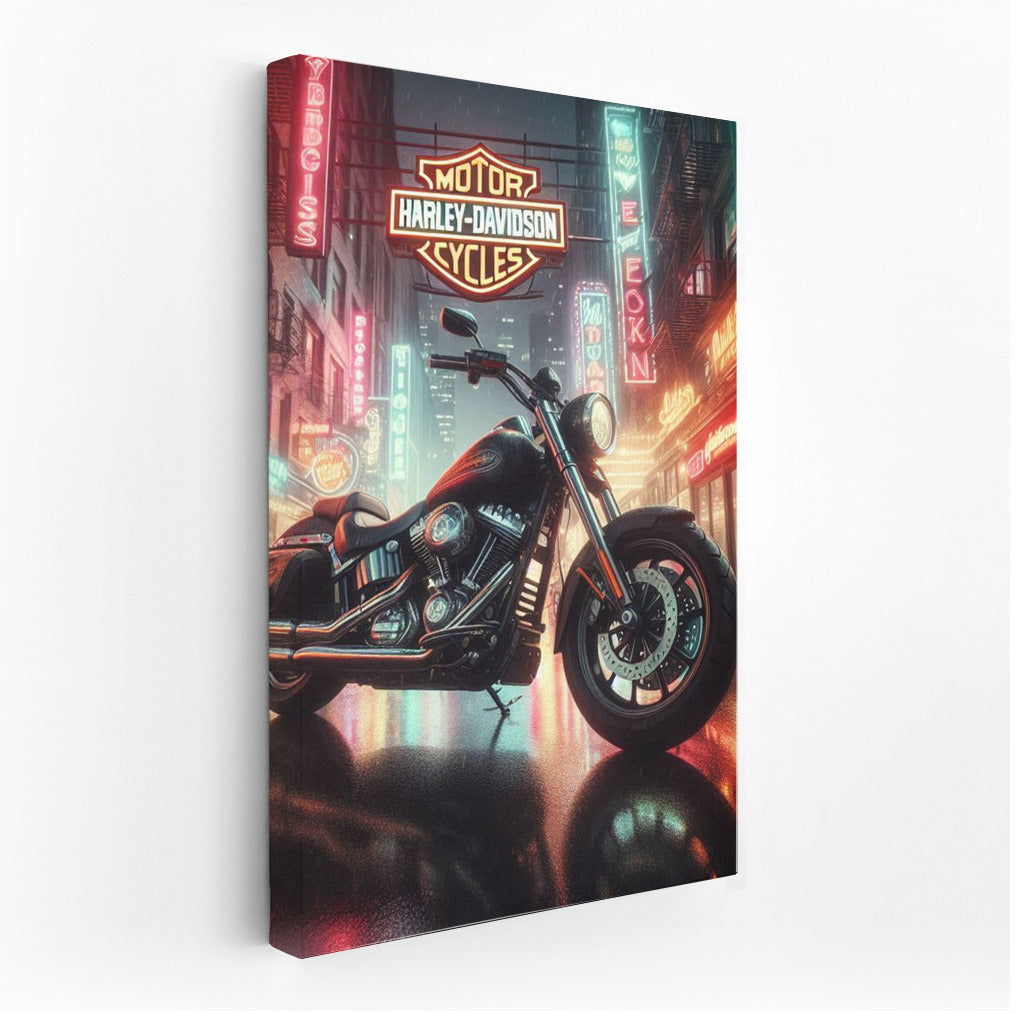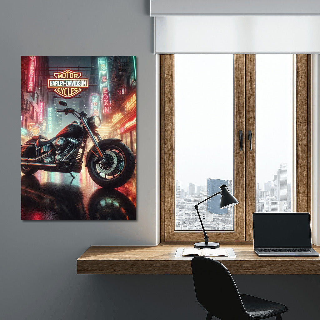 City night and freedom: a poster with Harley-Davidson on city streets, filling the space with the spirit of adventure. See more from the collection: Harley-Davidson Motorcycle Art
