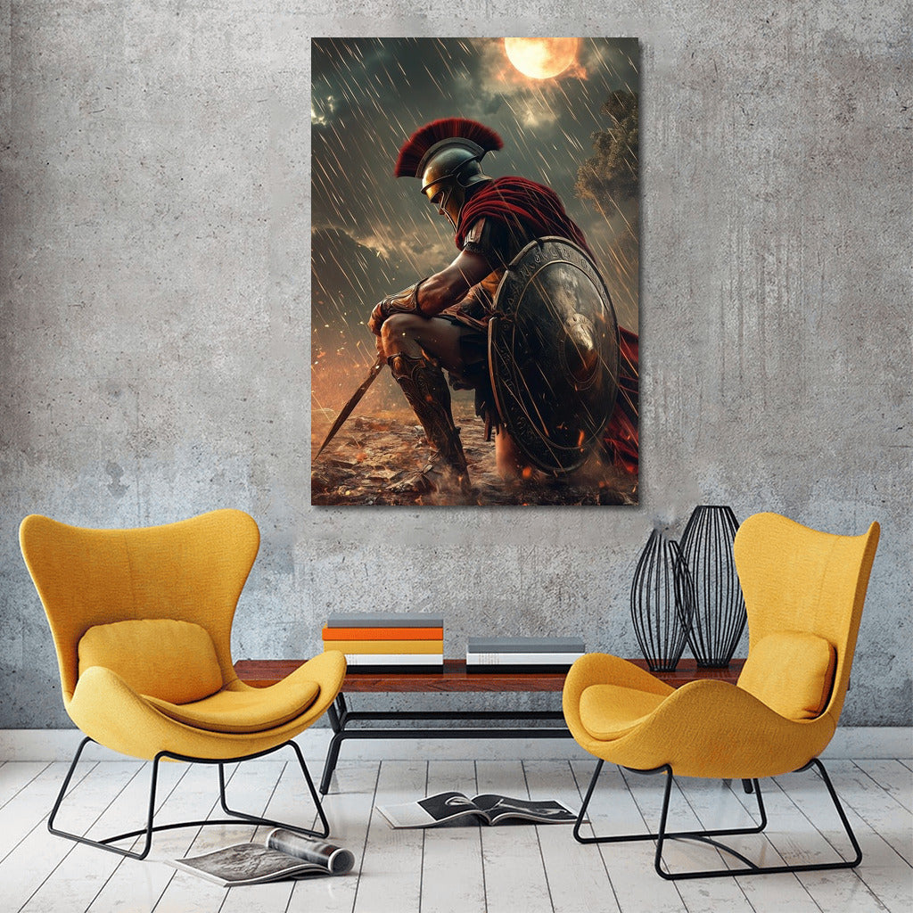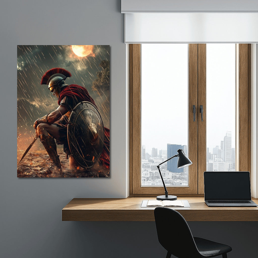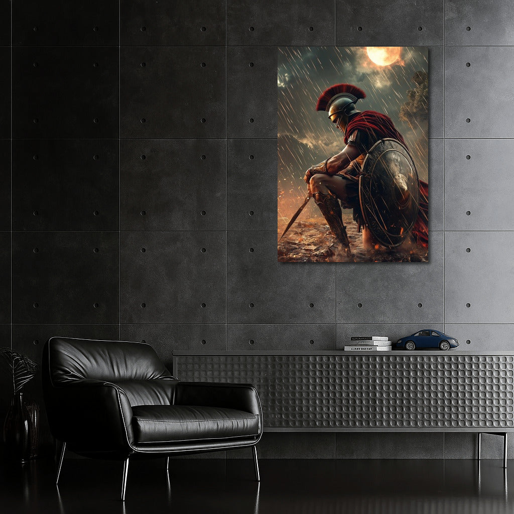 Dominion of the Moon and Armor: A poster of a warrior immersed in a rainy night. Epic wall art for your interior. See more from the collection: Mythology & Legends Art