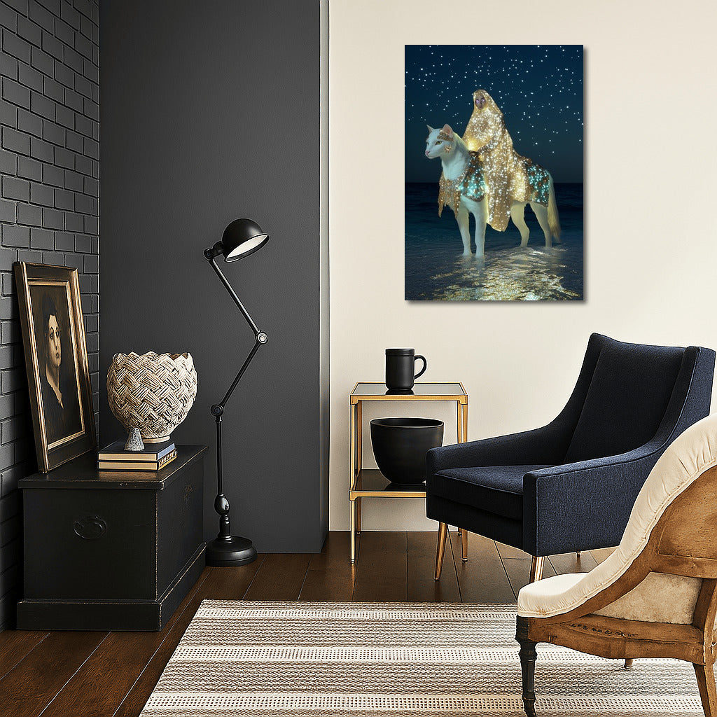 Night Odyssey: The Star-Cloaked Cat Rider Wall Art
