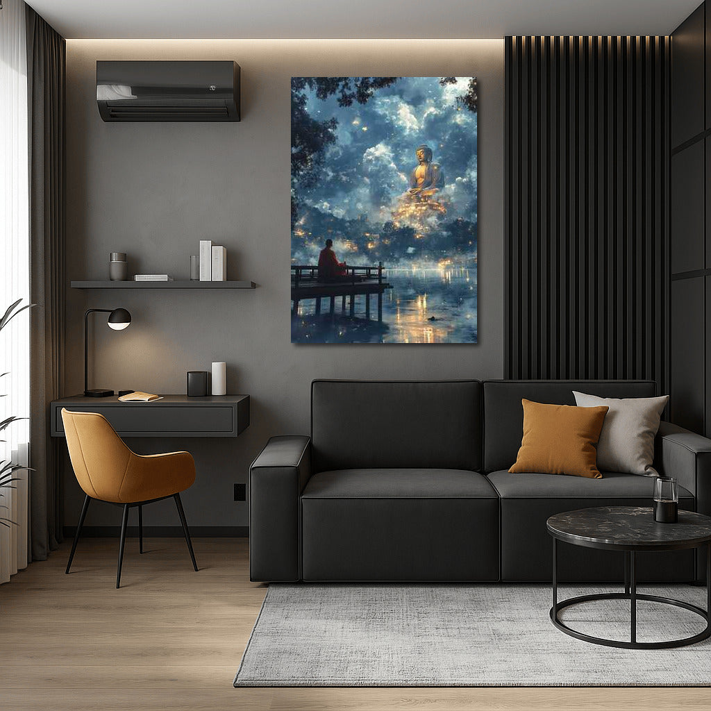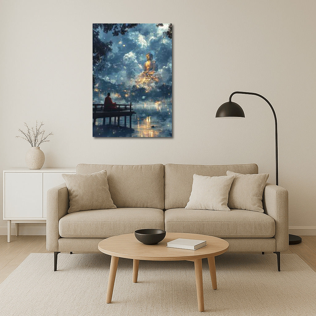 Night Peace: The Majesty of the Buddha Statue Wall Art