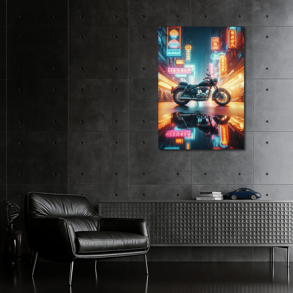 The legendary Indian motorcycle comes to life on the city's night streets. A bright poster to create dynamics in your interior. See more from the collection: Indian Motorcycle Art