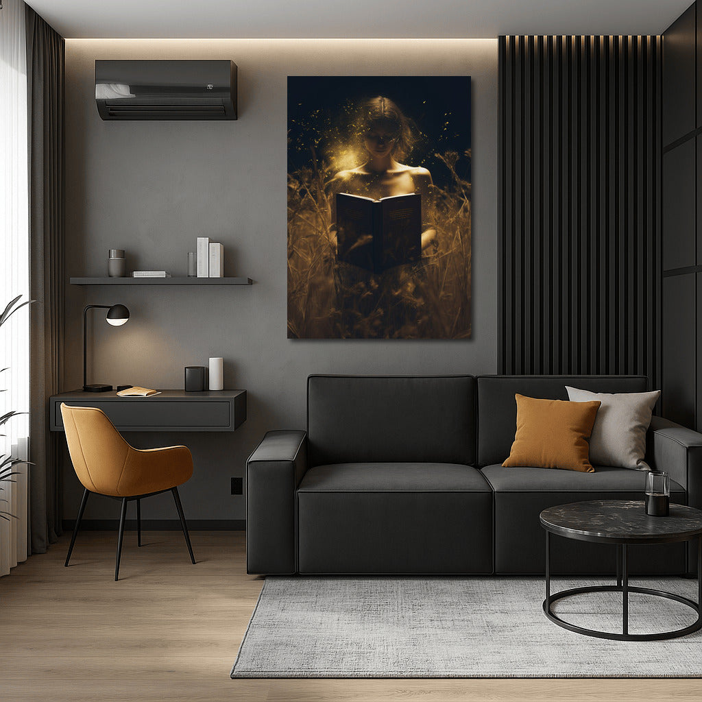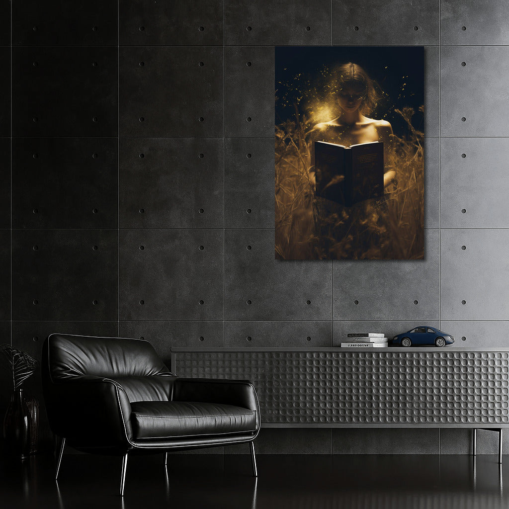 Light of Dream: poster Girl in the Field - the magic of the night and the mysteries of books in a magical play of light. Wall art that transforms the world. See more from the collection: Wall Art with Women