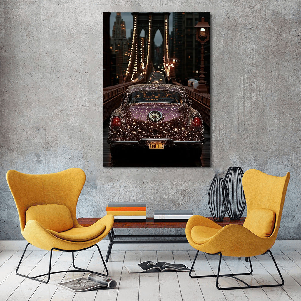 Shining retro car against the backdrop of a night city. This poster will add magic to any space. Wall art that inspires. See more from the collection: Mixed Wall Art
