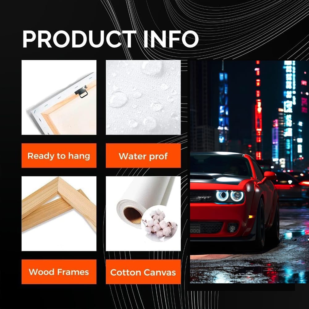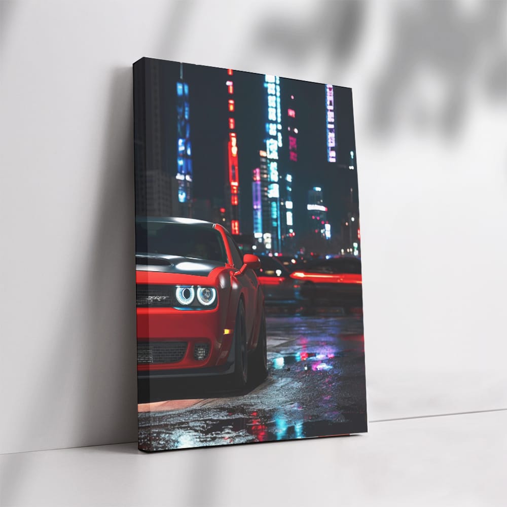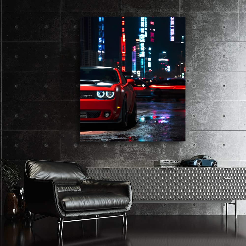 This poster is a godsend for those who are crazy about cars. A painting of a Dodge in the middle of a night highway is not just wall art, but a real adrenaline rush on the wall. A real must-have for any car enthusiast who wants to see action and speed on the wall. See more from the collection: Dodge Art
