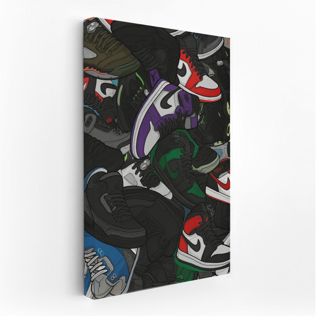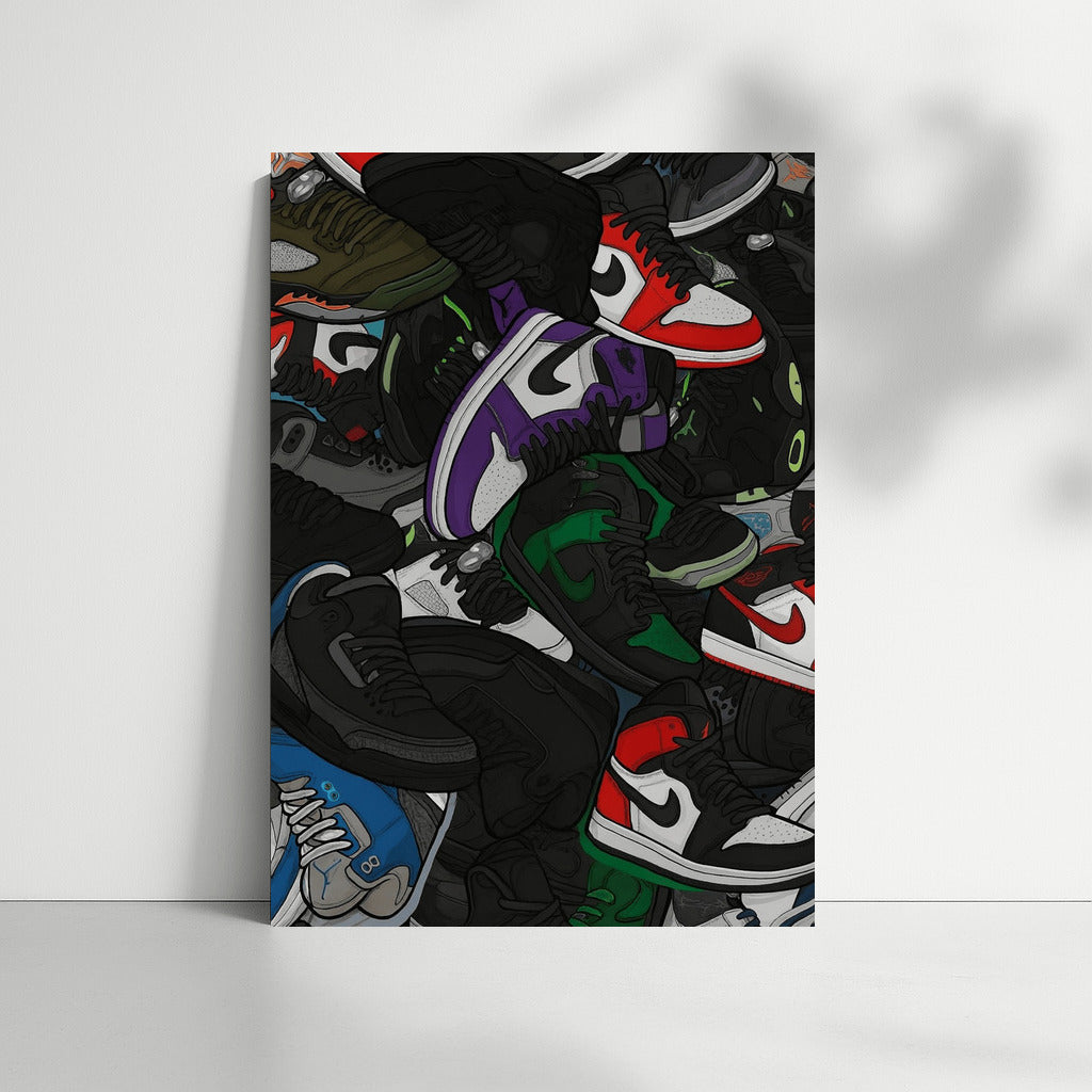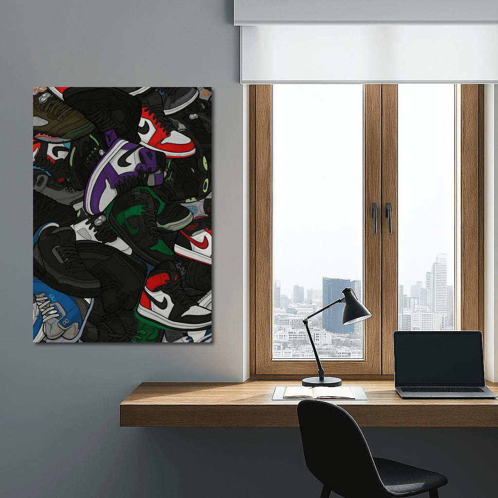 A bright poster with Nike sneakers, enlivens the walls with dynamics and style. Wall art for those who appreciate sports and design. See more from the collection: Nike Art