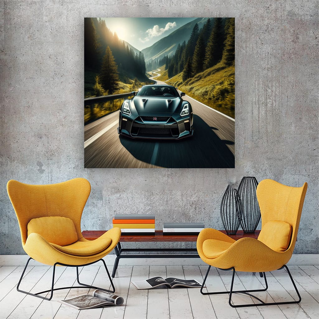 Nissan GT-R Conquers Mountain Road - Speed Meets Precision Wall Art