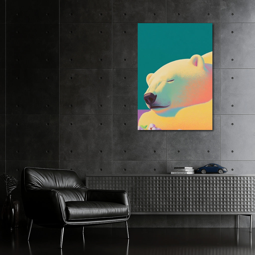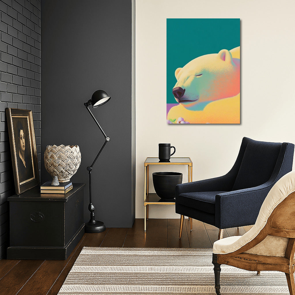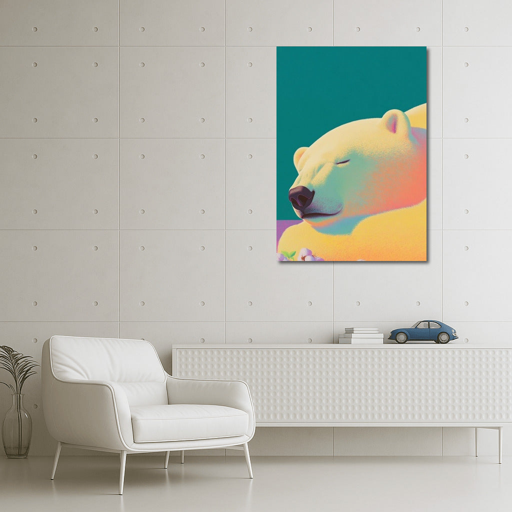Dive into a dream world with this vibrant painting. The soft-toned polar bear will be the highlight of your wall art. See more from the collection: Mixed Wall Art