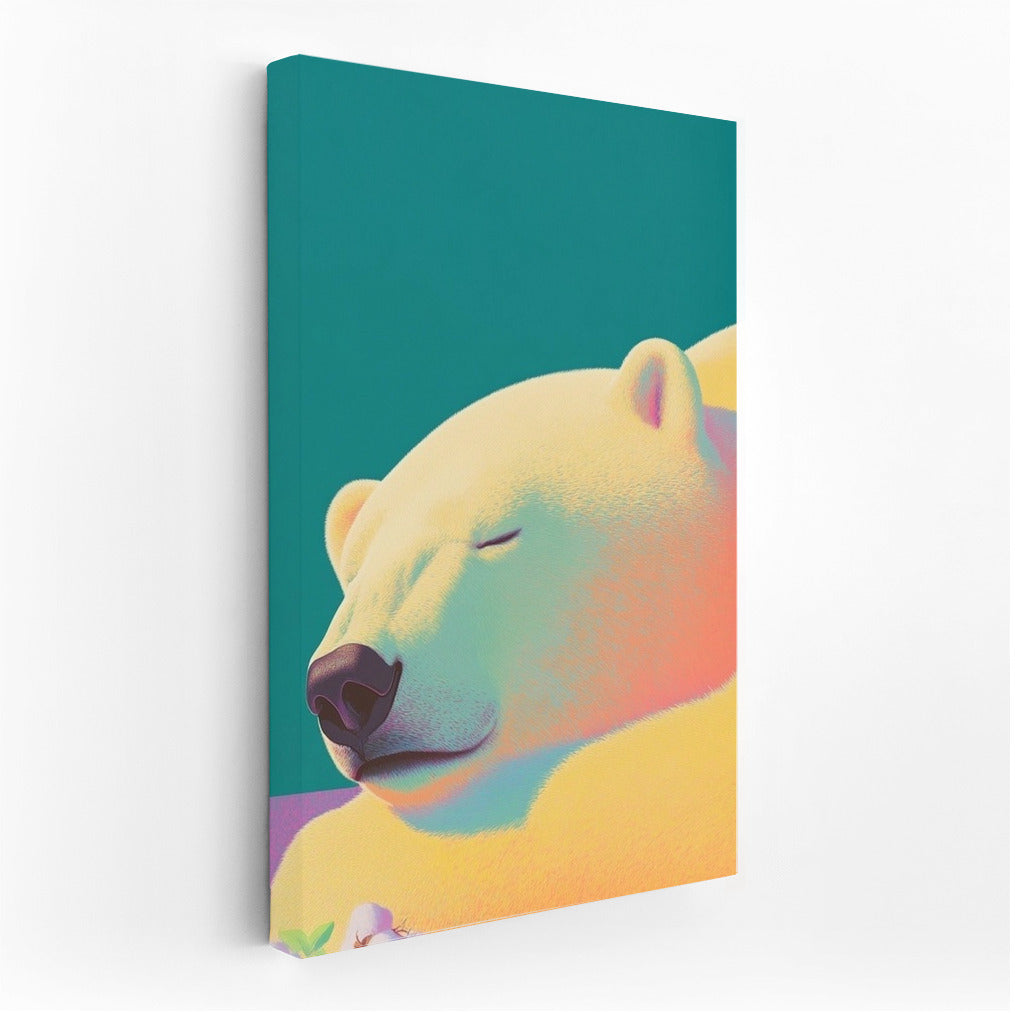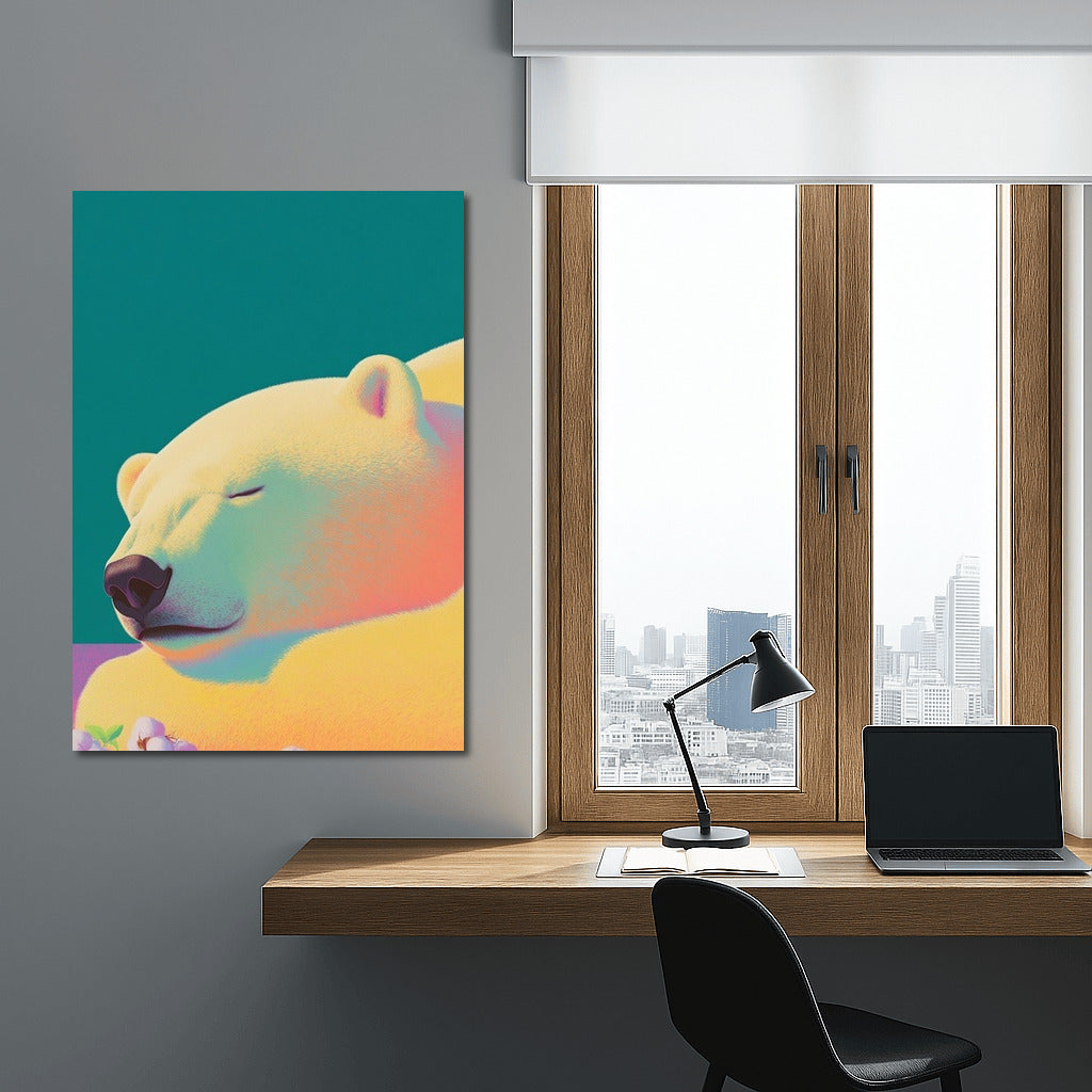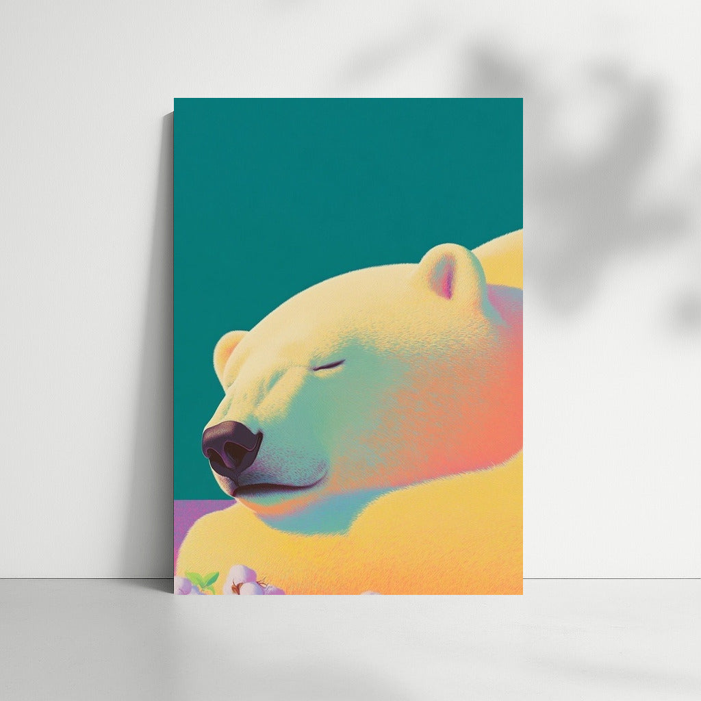 Dive into a dream world with this vibrant painting. The soft-toned polar bear will be the highlight of your wall art. See more from the collection: Mixed Wall Art
