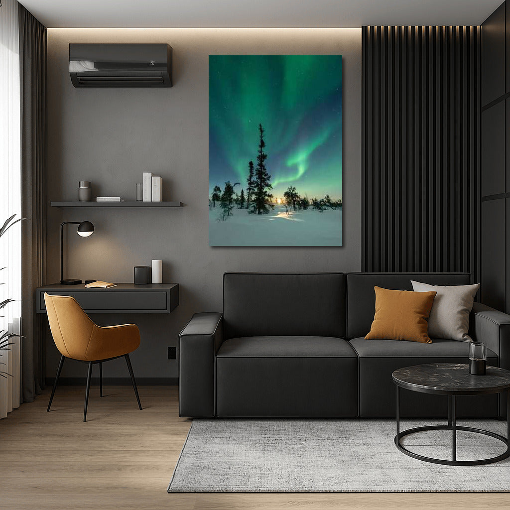 Northern Lights of Finland: Dance of Lights over Snowy Expanses Wall Art