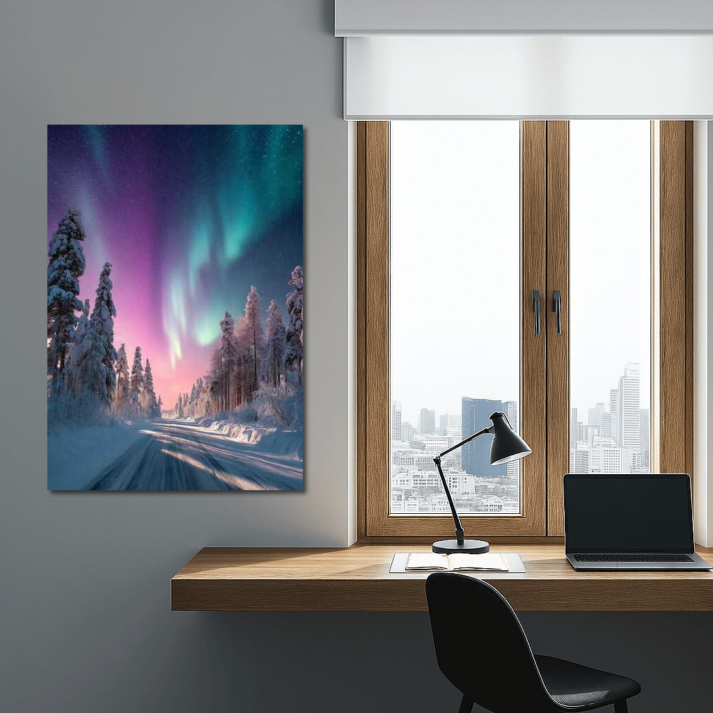Northern Lights Over Alaska's Winter Forest: The Mysterious Beauty of Nature in the USA Wall Art