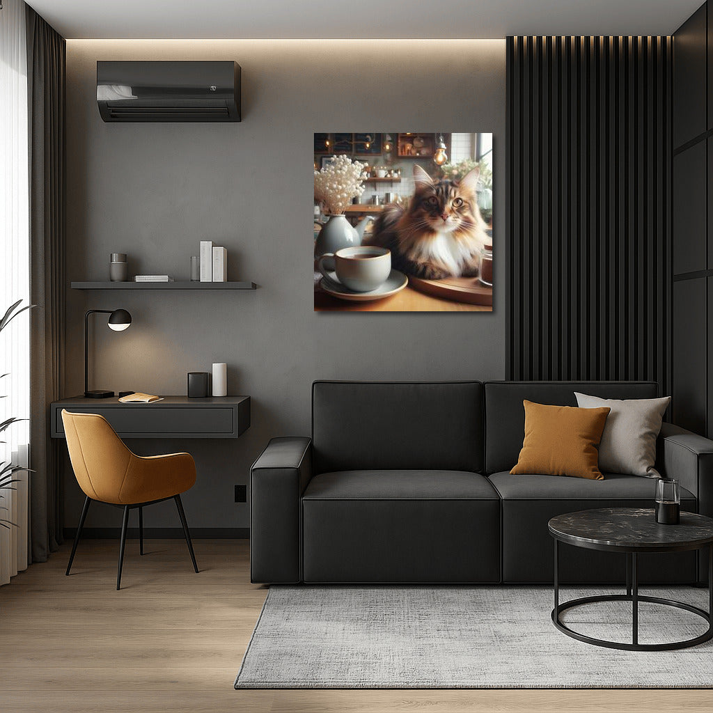 Norwegian Forest Cat and Aromatic Coffee: Cozy Charm in a Coffee Shop Wall Art