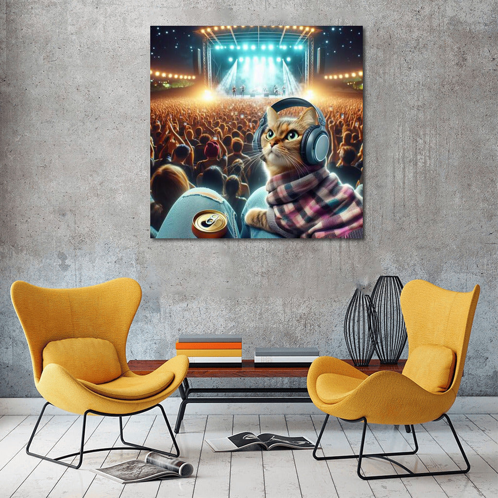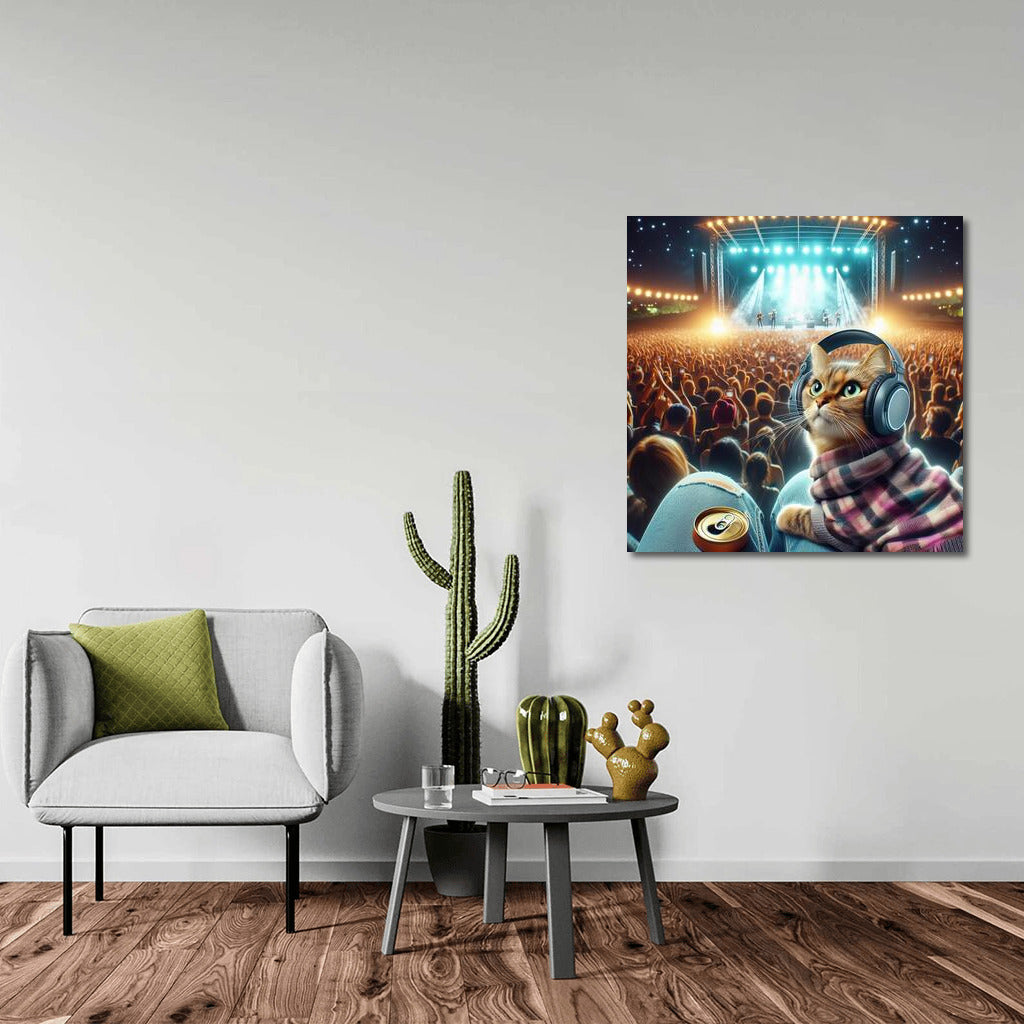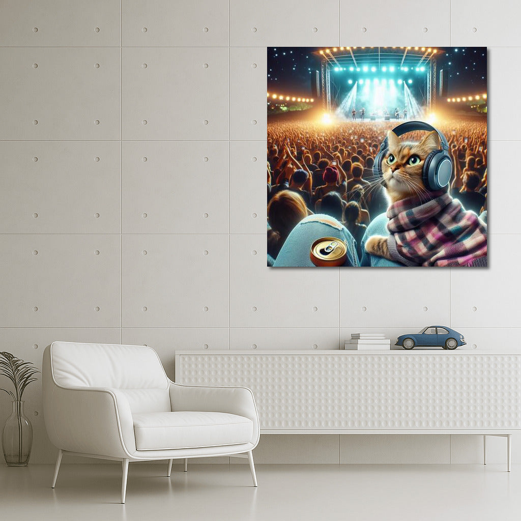 Norwegian Forest Cat at Music Festival: Night Beats in Headphones Wall Art