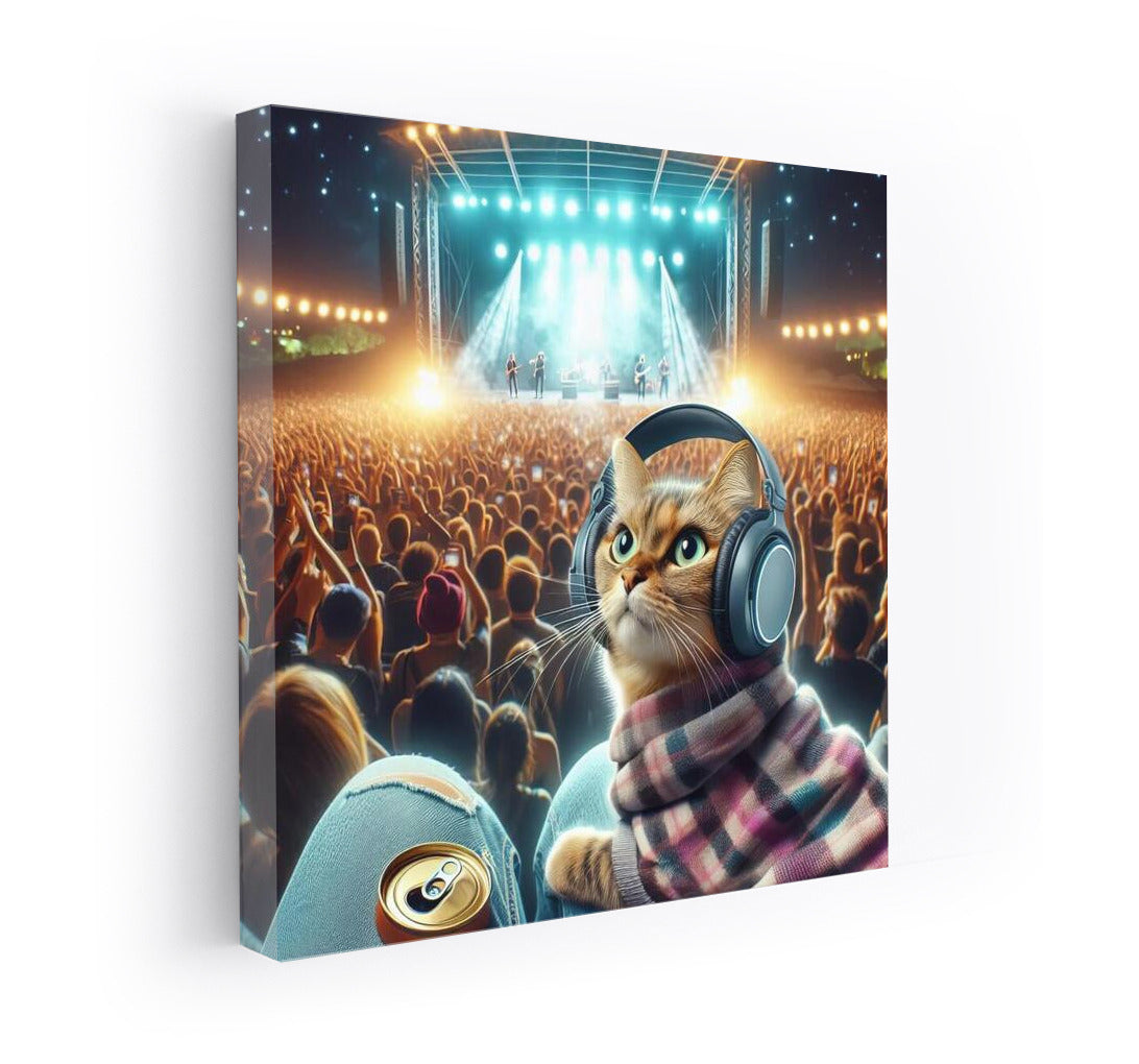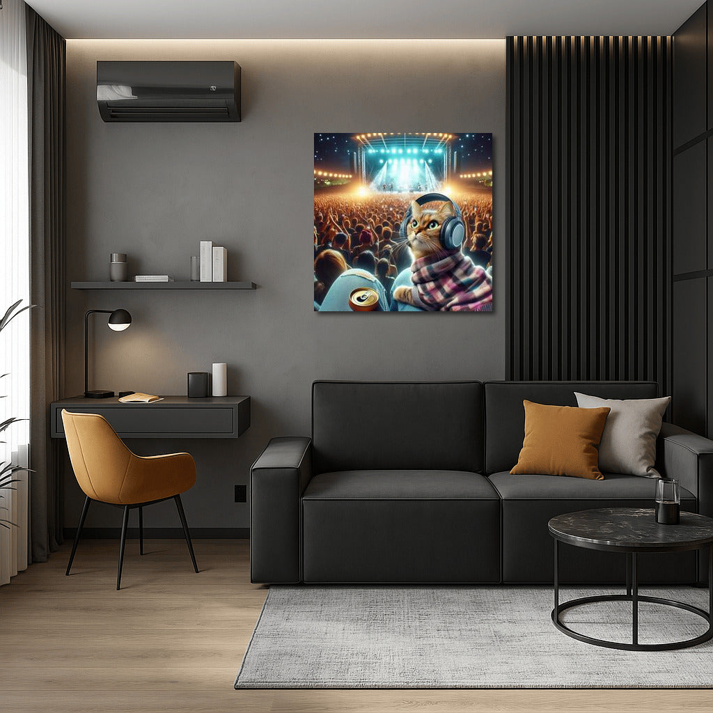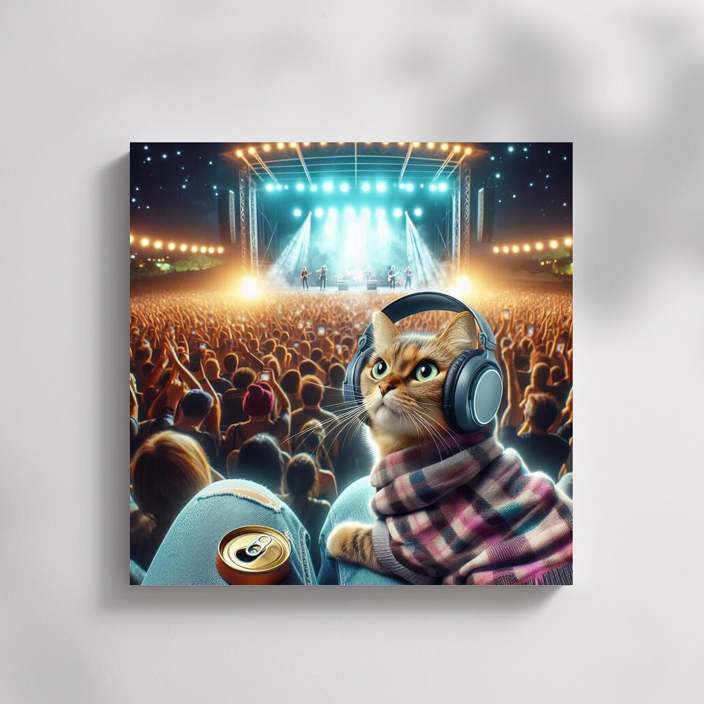 Norwegian Forest Cat at Music Festival: Night Beats in Headphones Wall Art