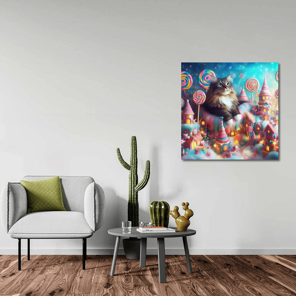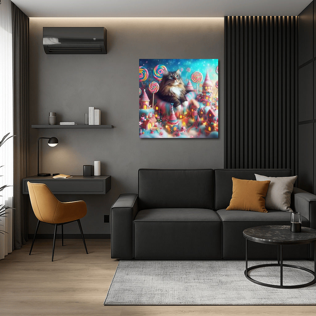 Dive into a fairy tale world with the wall art Norwegian Forest in Candyland Dream - a bright cat in the land of sweets! See more from the collection: Animals Art