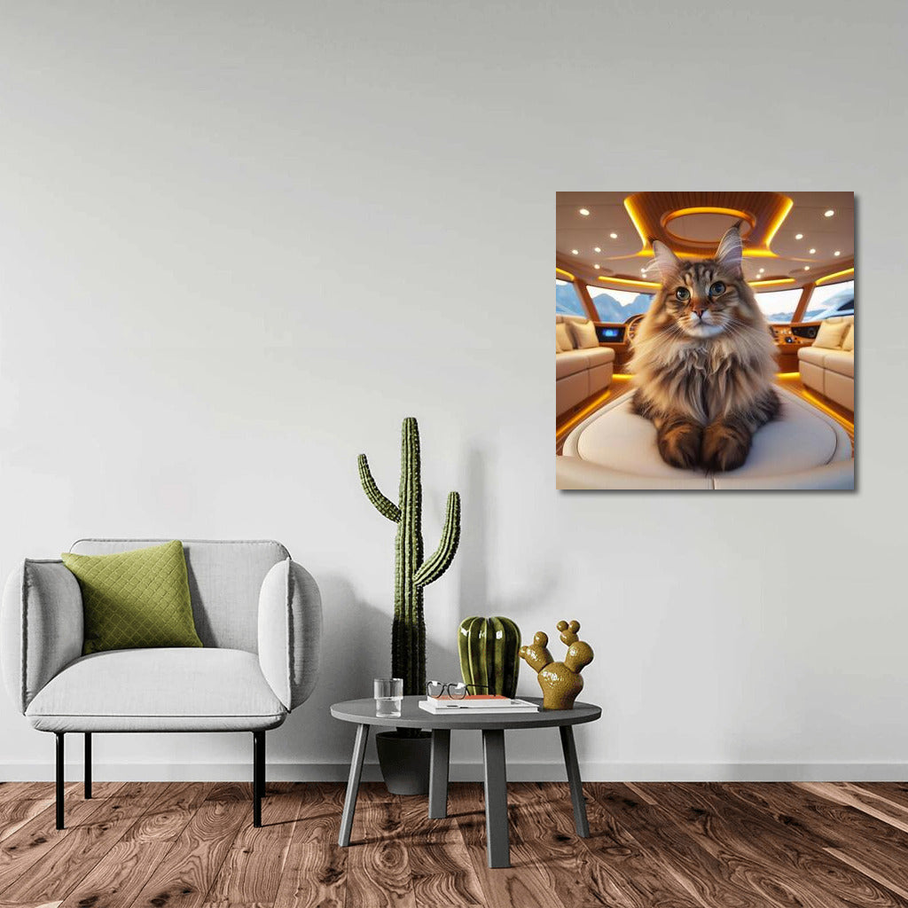 Norwegian Forest Cat on an Elegant Yacht: Exquisite Decor for Your Interior Wall Art