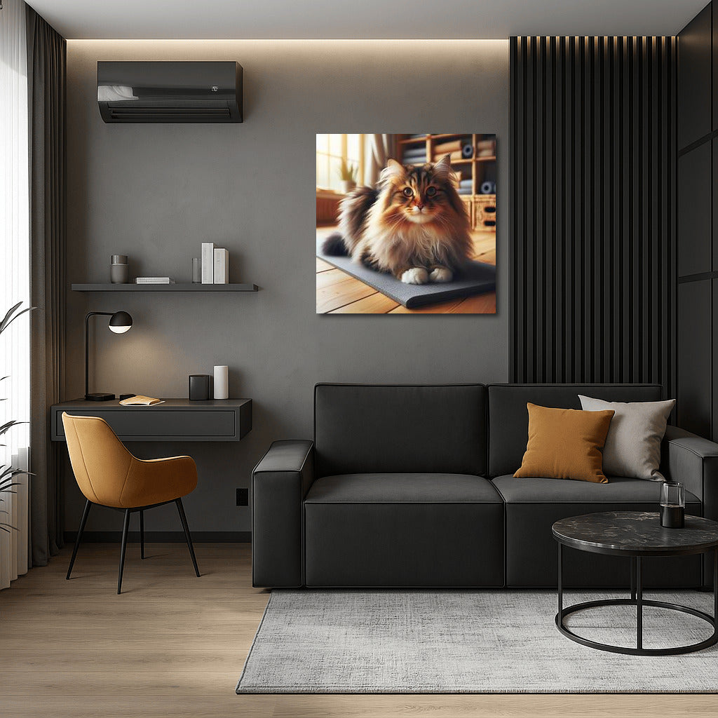Norwegian Forest wall art in the Yoga Studio 4: A furry nature dweller finds zen among yoga mats. See more from the collection: Animals Art