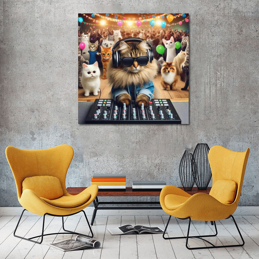 Norwegian Forest DJ Cat: Music Master in Glasses and Headphones Wall Art