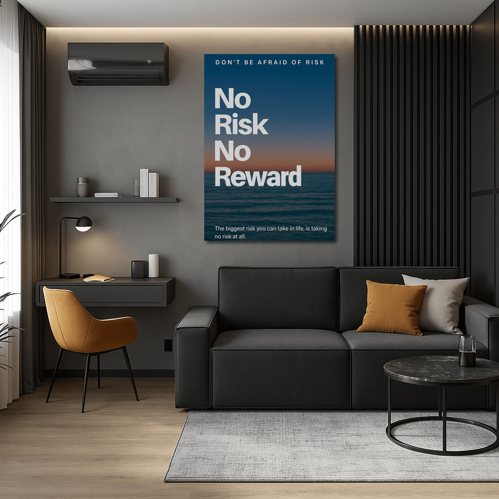 Ocean Poster Inspires Courage: No Risk No Reward. Wall Art for Growth and Bold Thinking! See more from the collection: Inspirational & Motivational Quotes Art