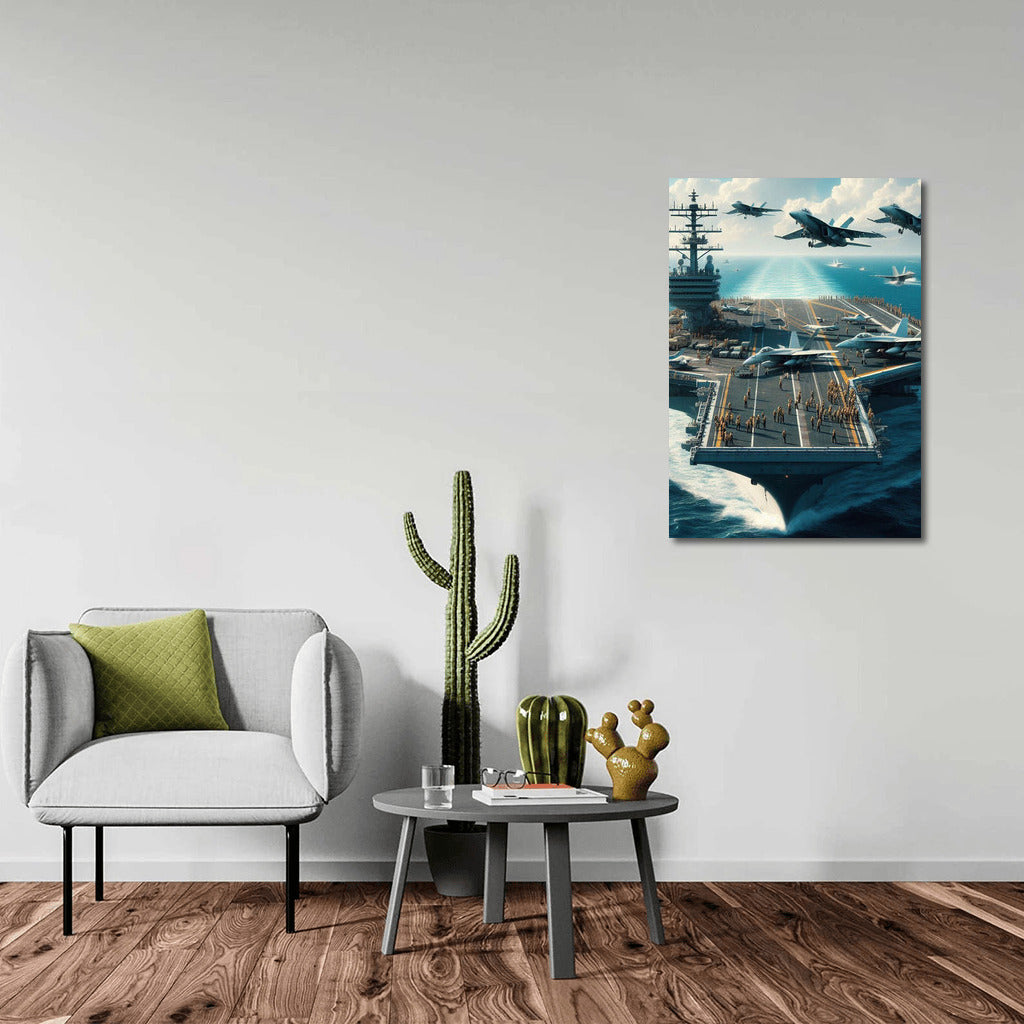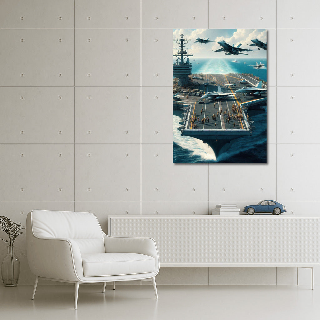 Ocean Power: Warplanes and Aircraft Carrier in Dynamics Wall Art