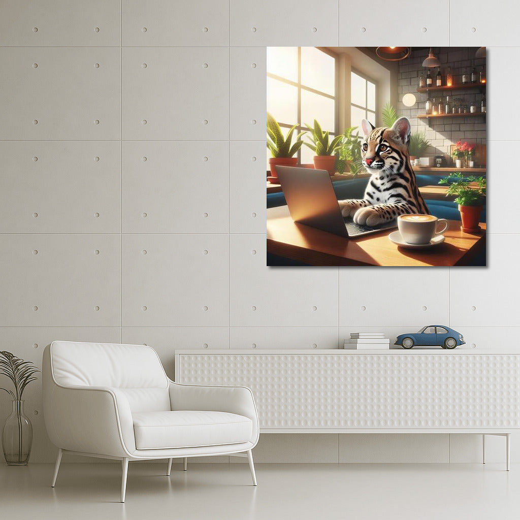 Ocelot with a laptop in a cafe: Creative accent for the interior Wall Art