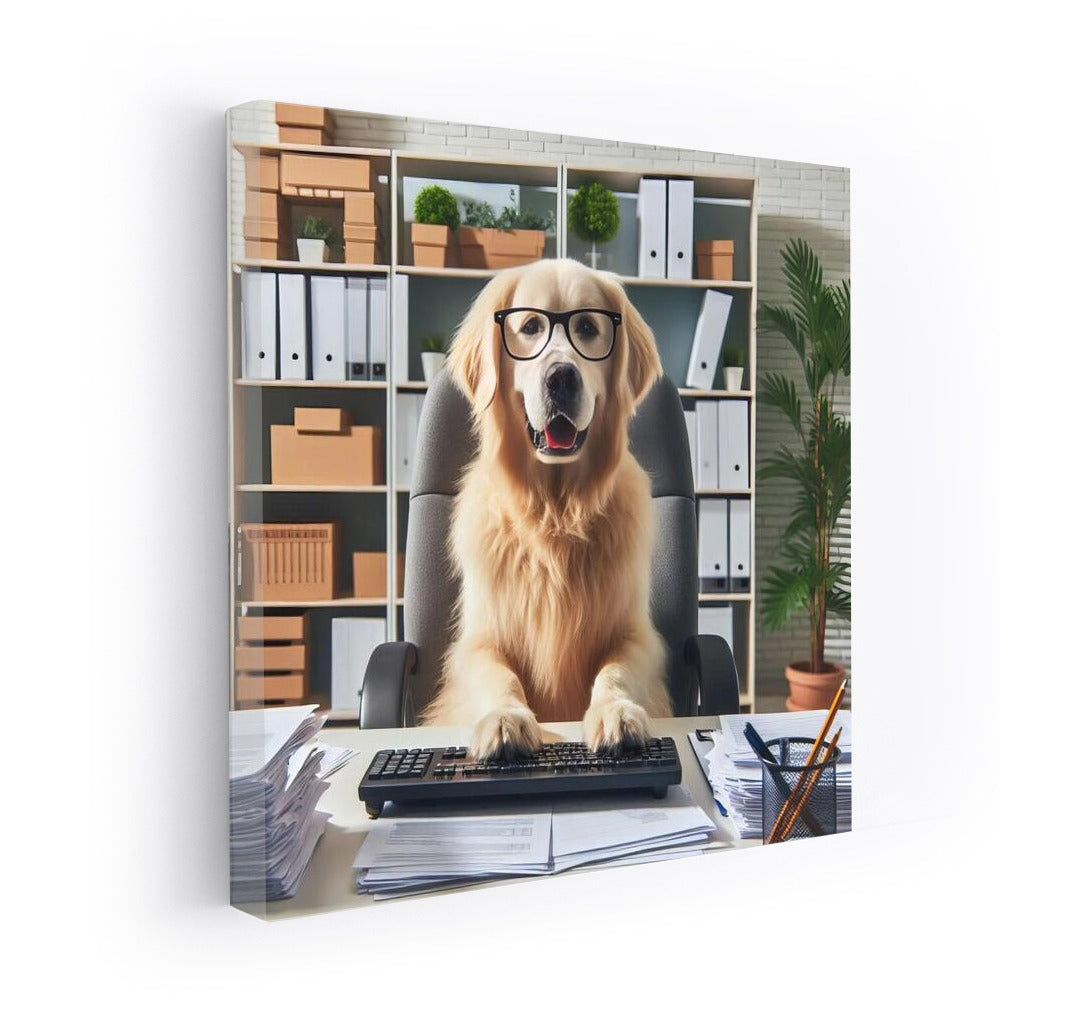 Unique poster: dog in the office at the computer. Wall art that adds humor and style to your interior. See more from the collection: Animals Art