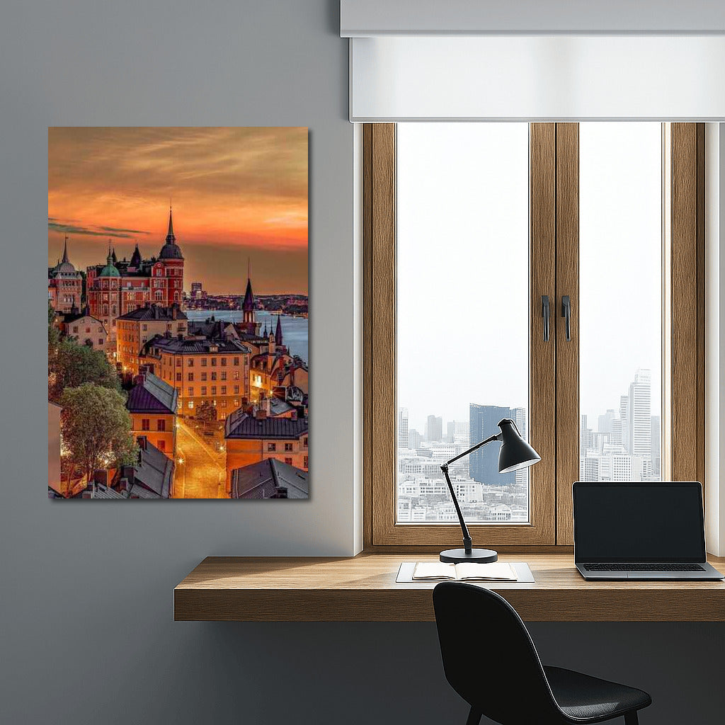 Experience a cozy Swedish evening with our poster: old streets and sunset over the water make for the perfect wall art. See more from the collection: Country Art