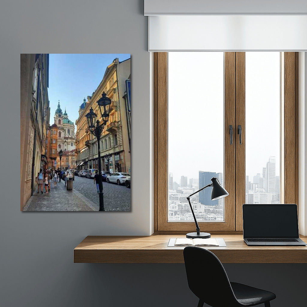 Cozy streets of the Czech Republic come to life on your wall. Immerse yourself in the atmosphere of the old town with this unique poster. See more from the collection: Country Art