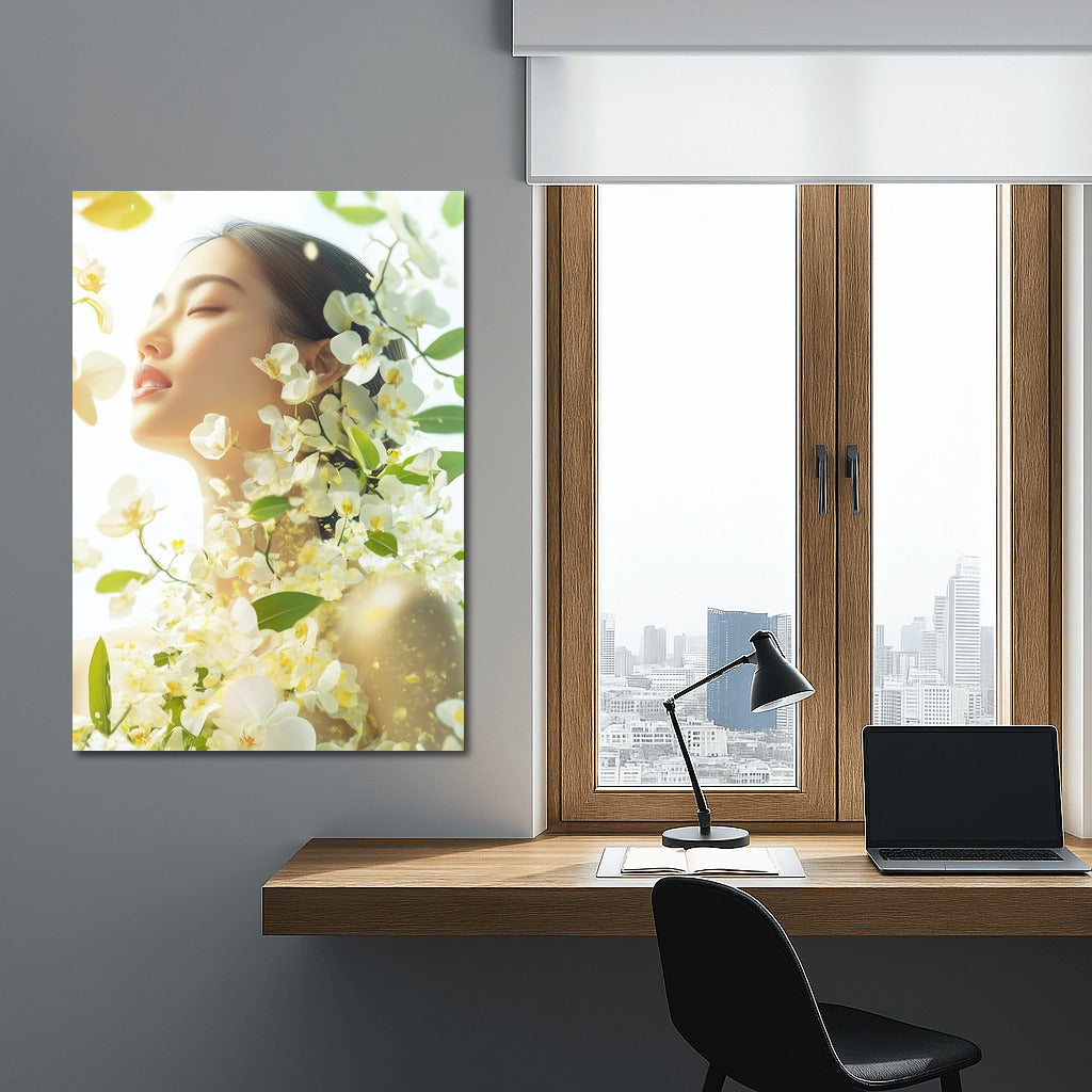 Inspirational poster with a gentle image among orchids. Dive into the world of harmony and beauty with this wall art. See more from the collection: Mixed Wall Art