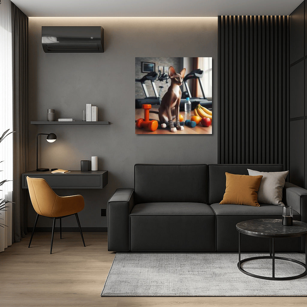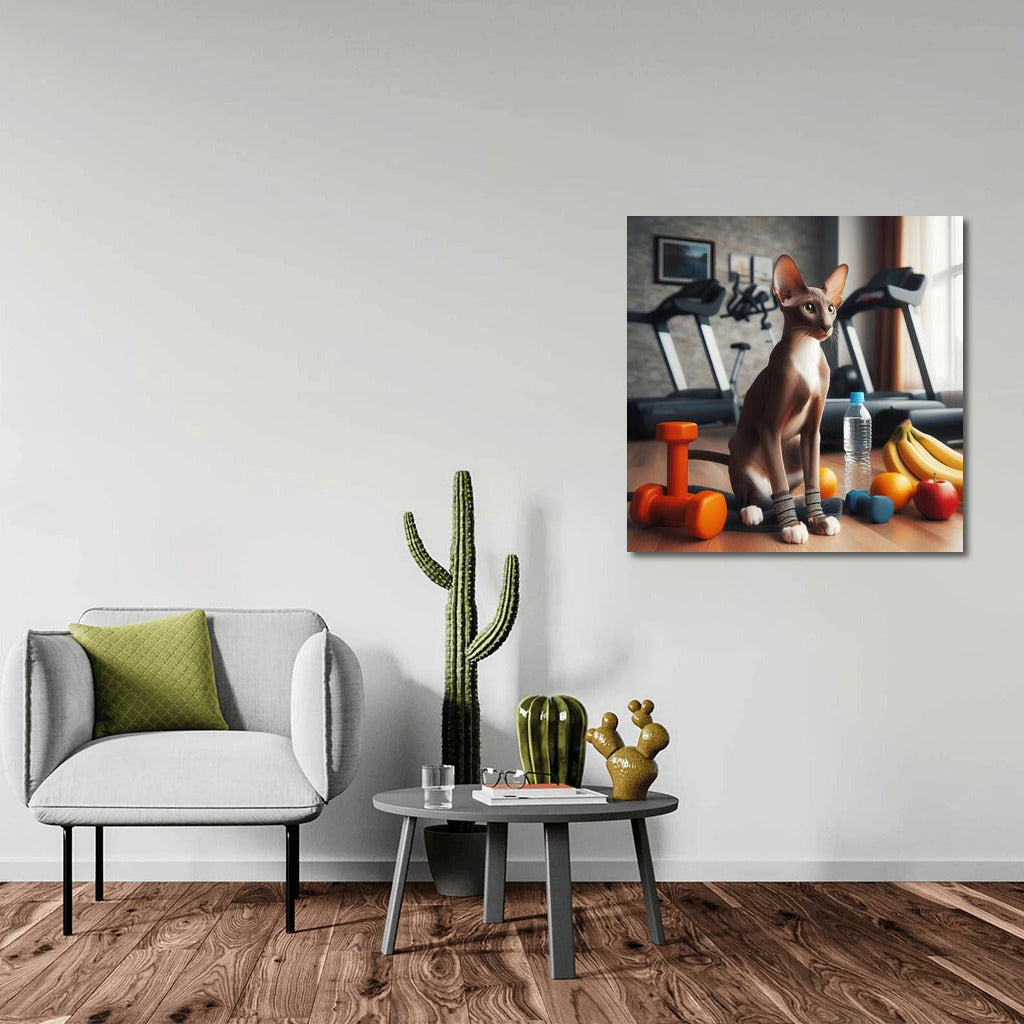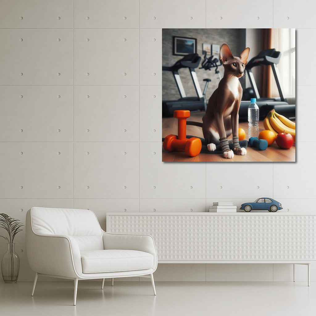 Oriental Shorthair in the gym: A cat in a world of dumbbells and fruits Wall Art