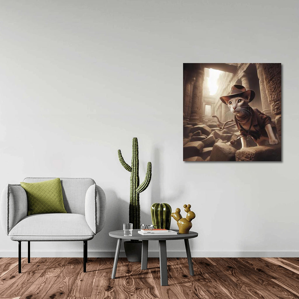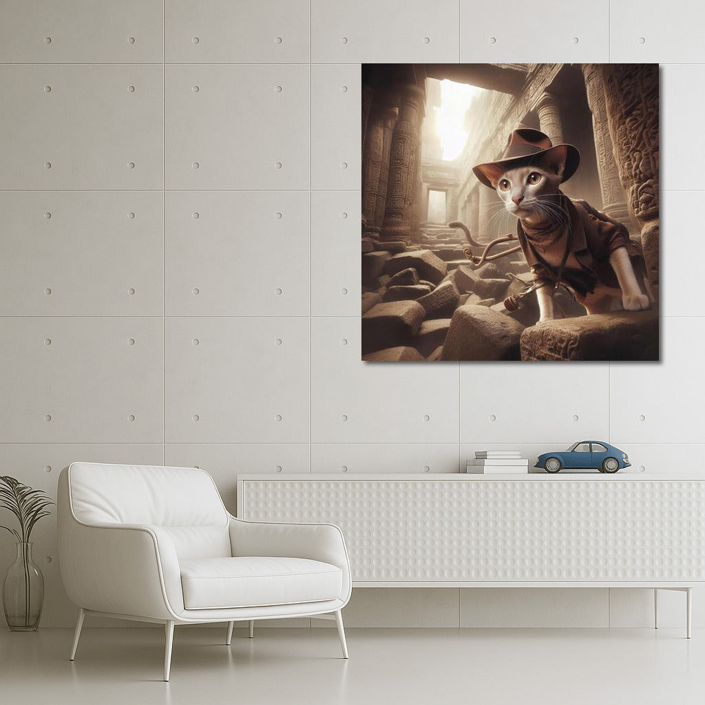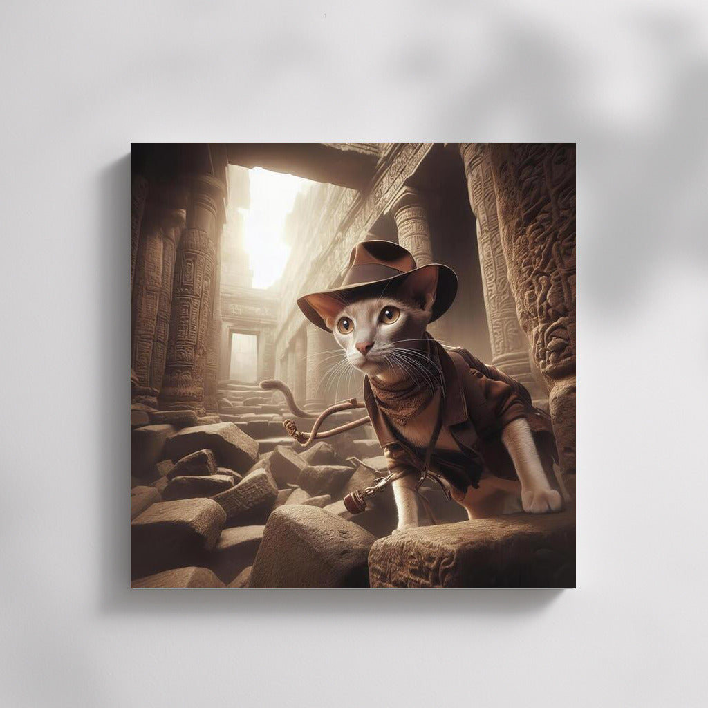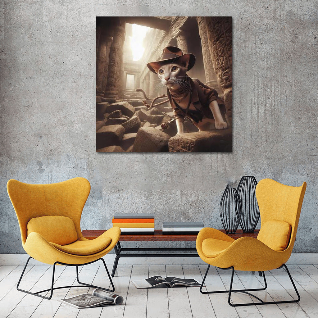Oriental Temple Adventure Cat: Indiana Jones Inspiration Wall Art