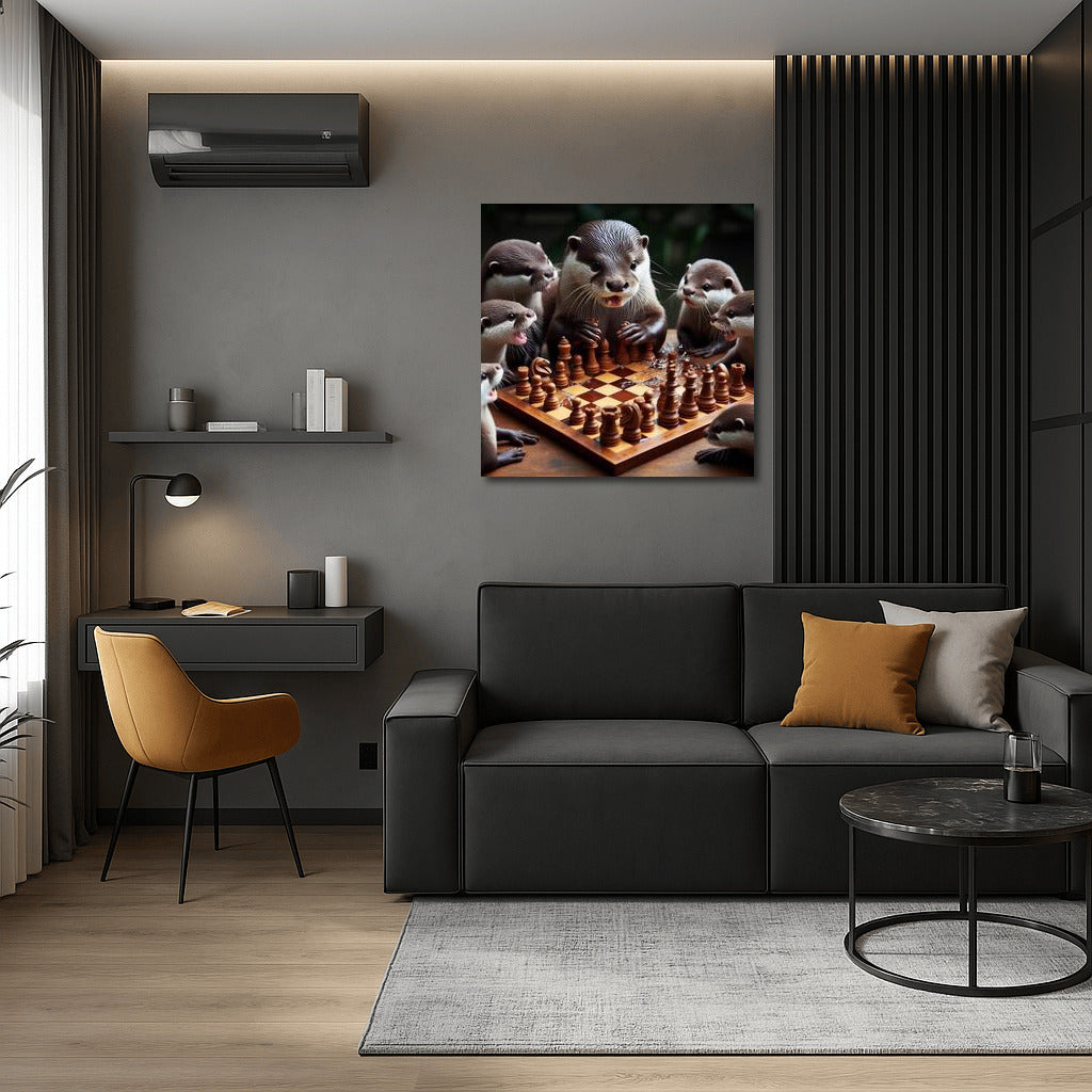 Otter Chess Tournament: Live Pieces in Battle Wall Art